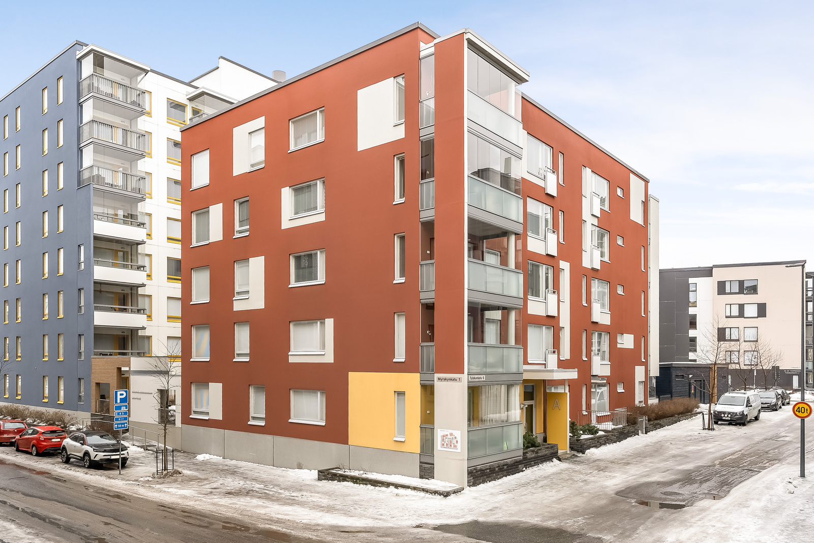 Tässä 1. kerroksen asunnossa on todella hyvä pohjaratkaisu, neliöt ovat hyvin käytetty ja huoneet kaikki tilavia, ja olohuone-keittiötila on avara ja valoisa. Säilytystilaa on mukavasti, löytyy vaatehuone ja useita kaappeja. Omassa saunassa voi saunoa oman aikataulun mukaan ja lasitettu parveke on mukava olohuoneen jatke.