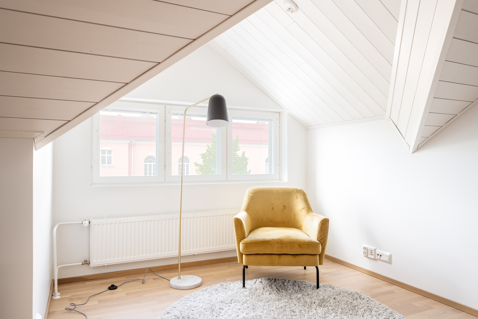 Ylimmän kerroksen uniikki ullakkoasunto Kuopion sydämessä!