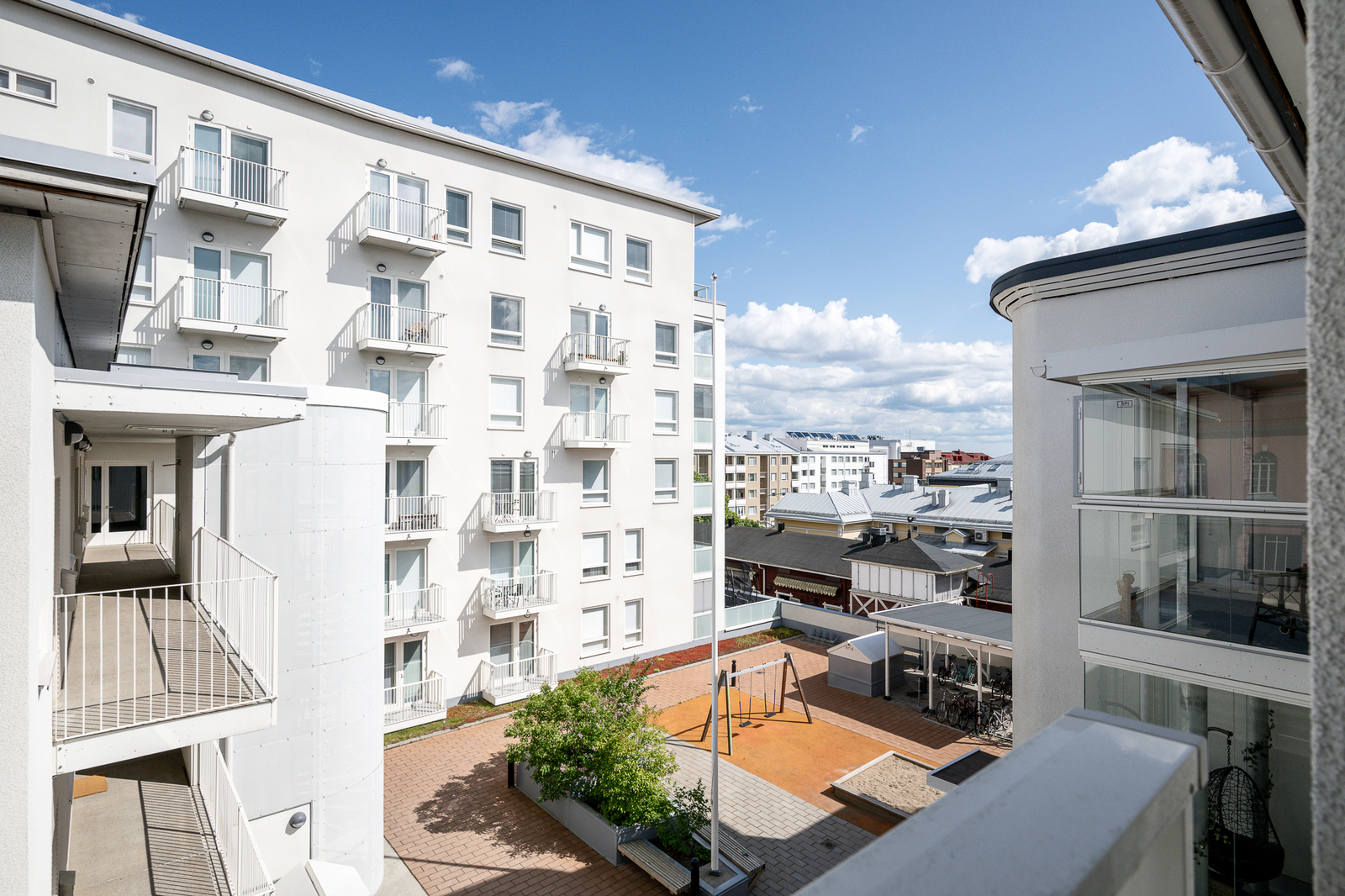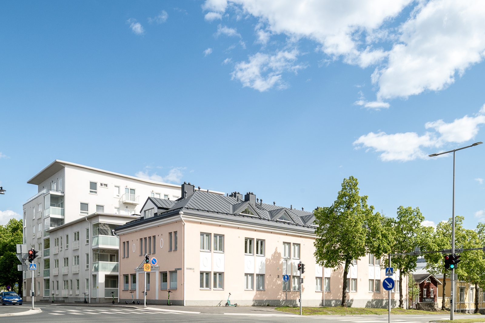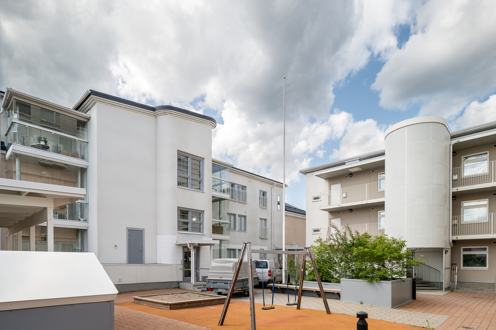 Taloyhtiö sijaitsee omalla tontilla, mikä on iso plussa keskustassa.