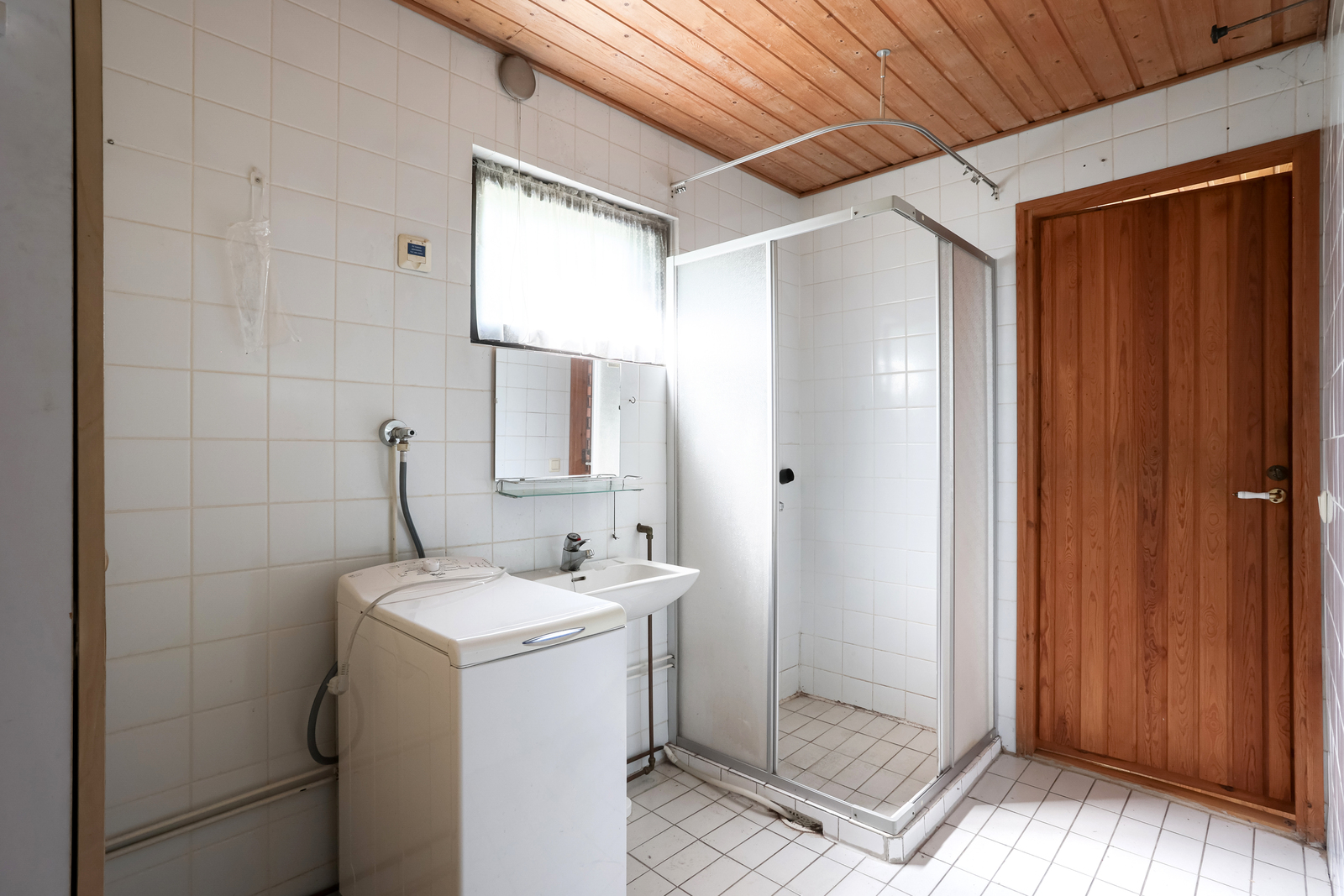Pesukoneliitäntä, suihkuseinä, lattialämmitys, peilikaappi, suihku ja kiinteät valaisimet, seinät (kaakeli), lattiat (laatta) |