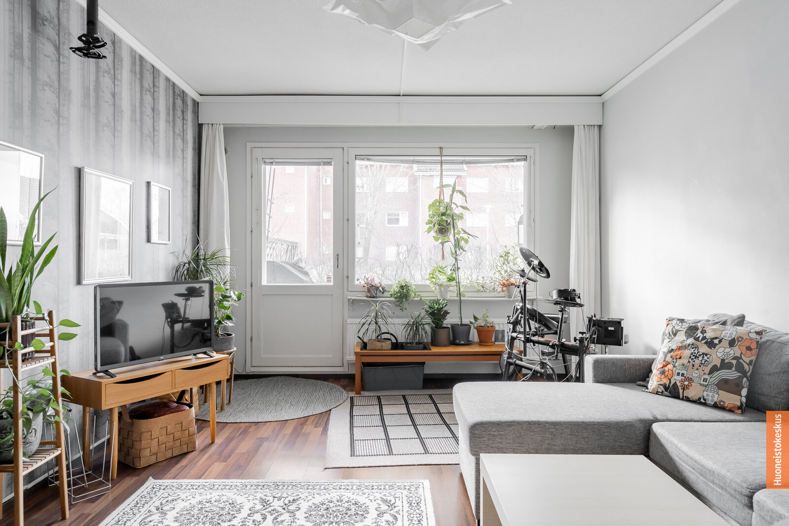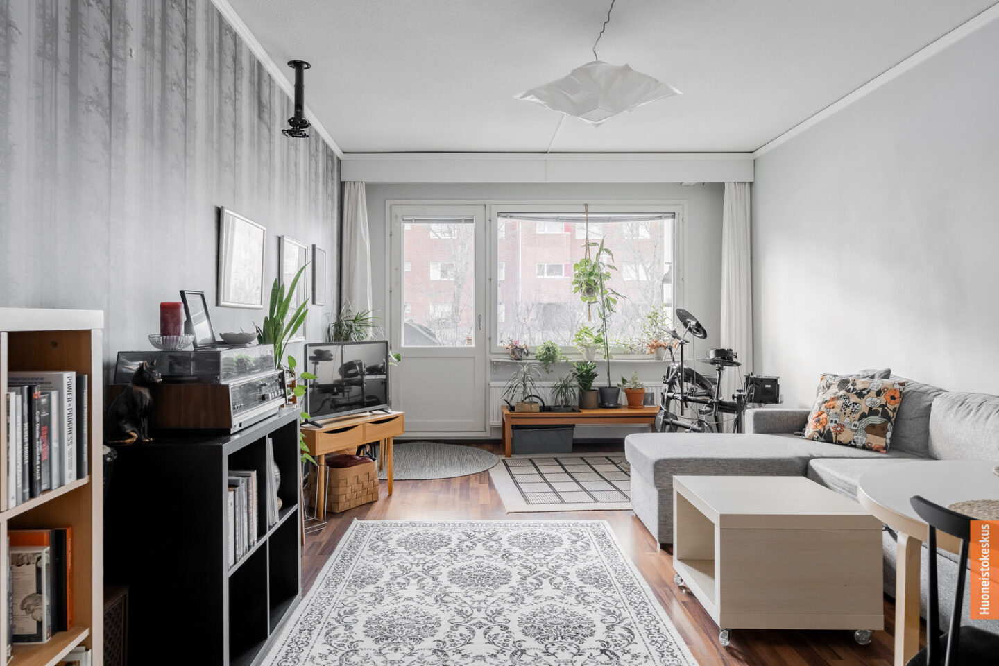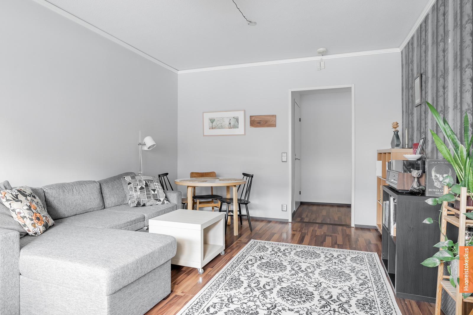 | Olohuoneen kuvaus | Seinät (tapetti ja maali), lattiat (laminaatti) |