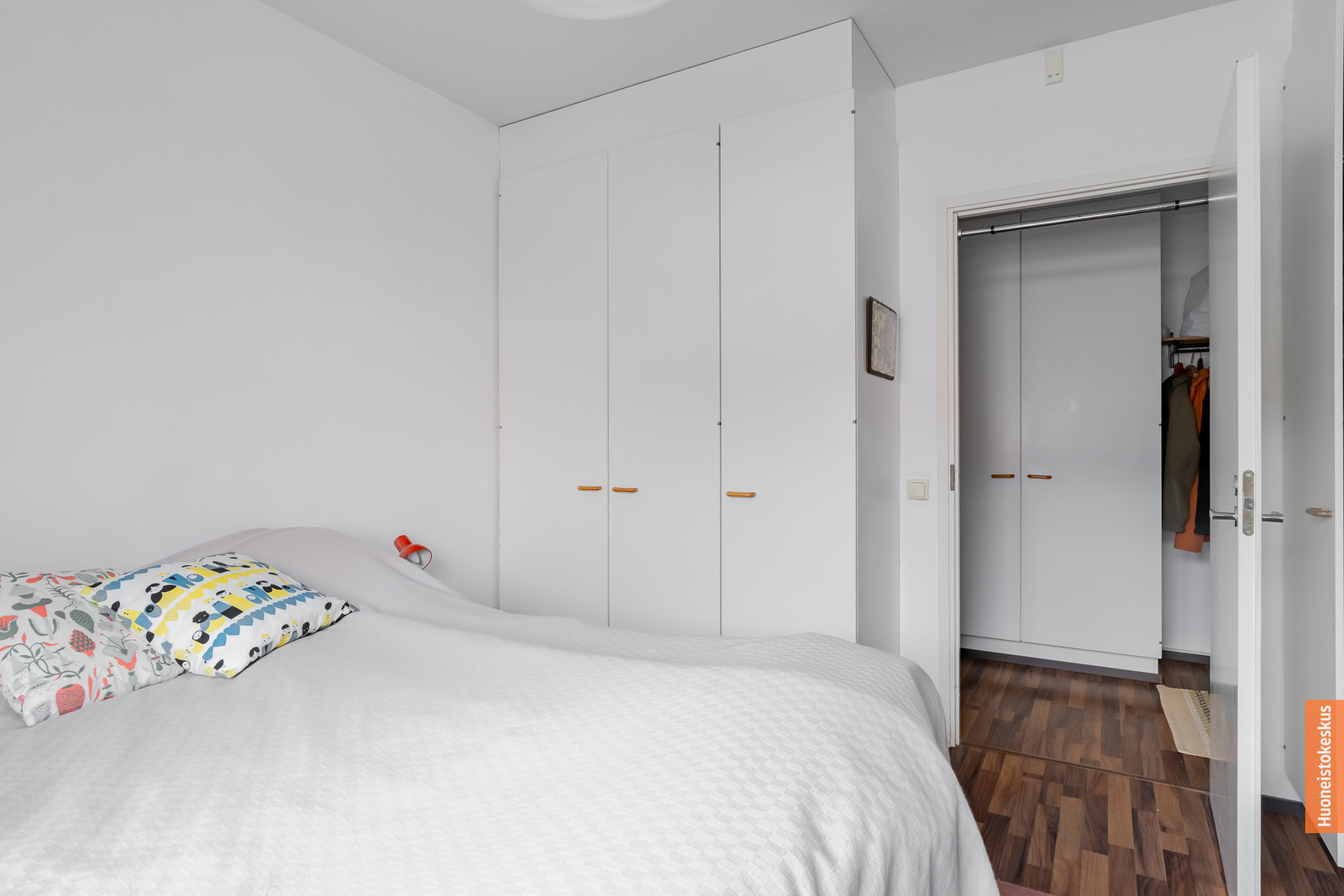 Makuuhuone on viihtyisä ja toimiva, ja tilavan kylpyhuoneen yhteydessä oleva sauna tarjoaa mahdollisuuden rentoutumiseen omassa kodissa.
