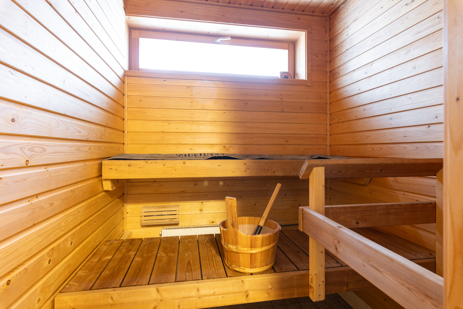 | Saunan kuvaus | Seinät (puu), lattiat (laatta), Sähkökiuas |