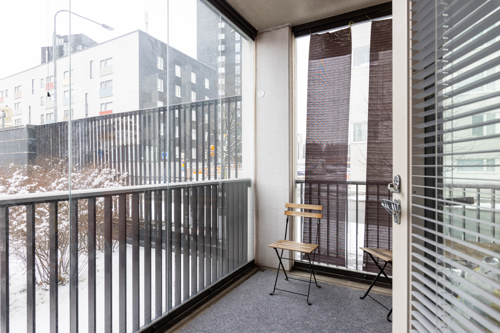 Tässä kodissa on hyvä pohjaratkaisu, joten hukkaneliöitä ei ole. Omassa saunassa käytyään voi mennä vilvoittelemaan lasitetulle tilavalle parvekkeelle. Keittiössä on laadukkaat materiaalit sekä hyvin työskentelytilaa.