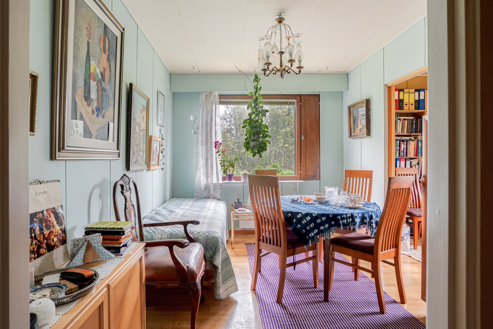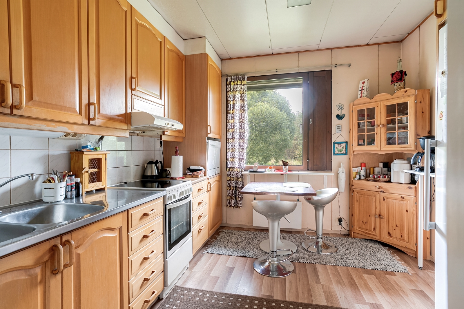 | Olohuoneen kuvaus | Seinät (maali), lattiat (laminaatti), Halltex-katto |