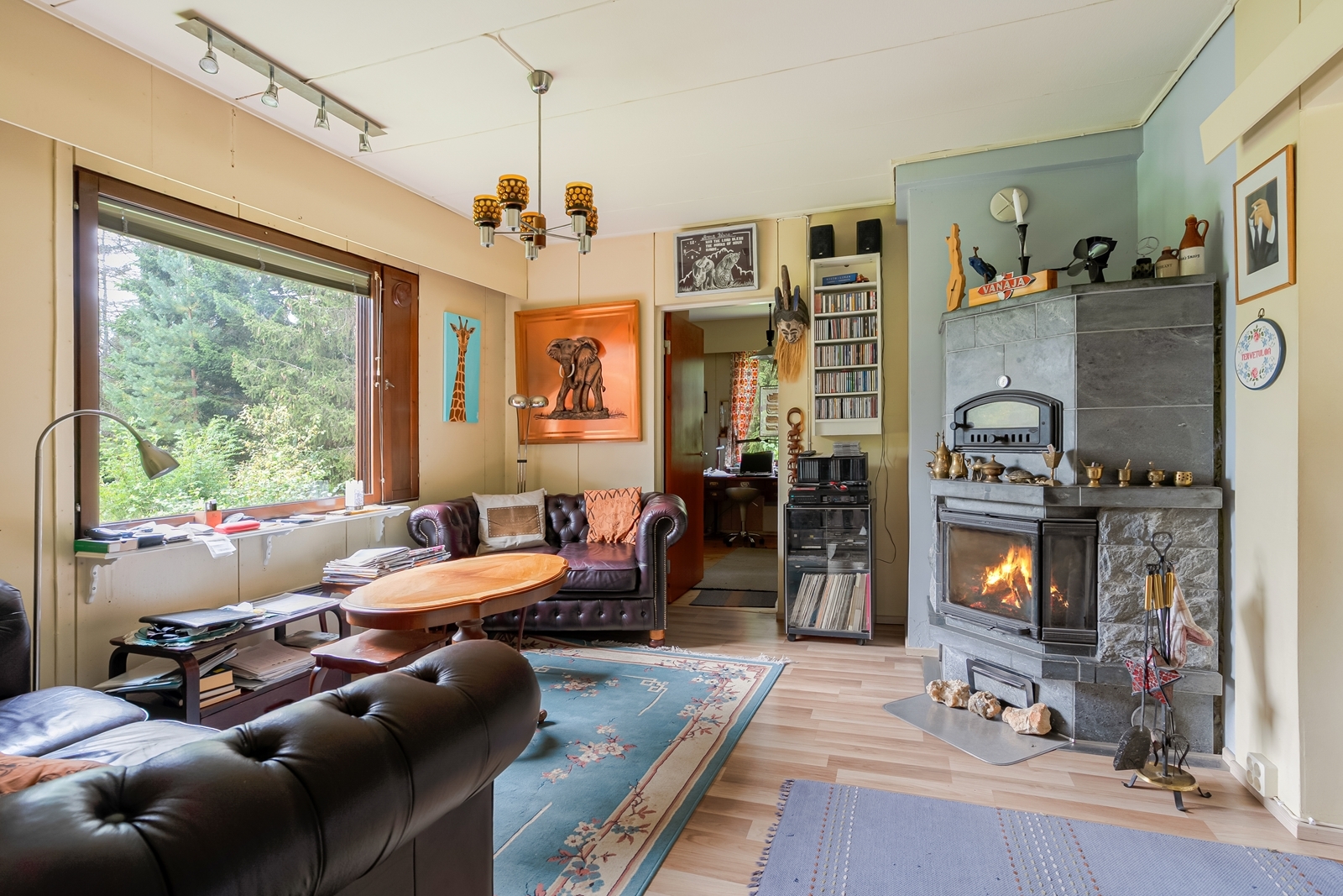 Talossa on kaksi tulisijaa, jotka tuovat lämpöä ja tunnelmaa niin syysiltoihin kuin talvipäiviin. Ne tekevät kodista myös energiatehokkaan ja viihtyisän.