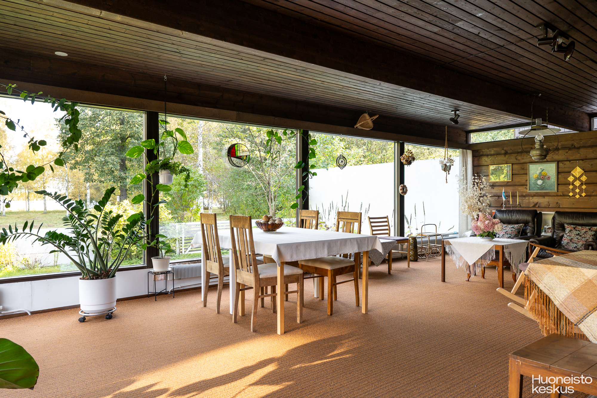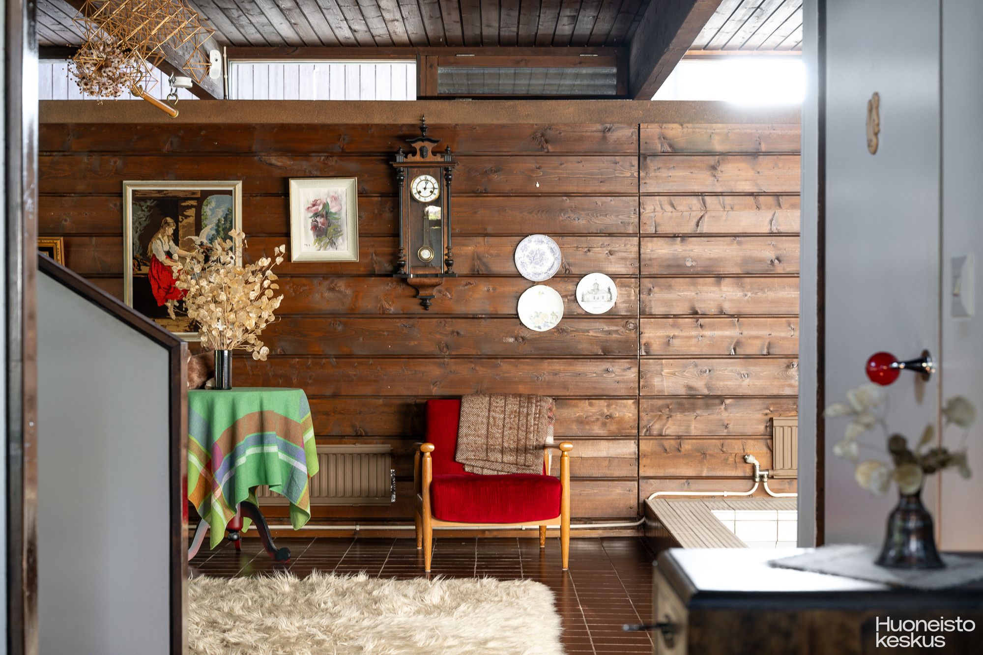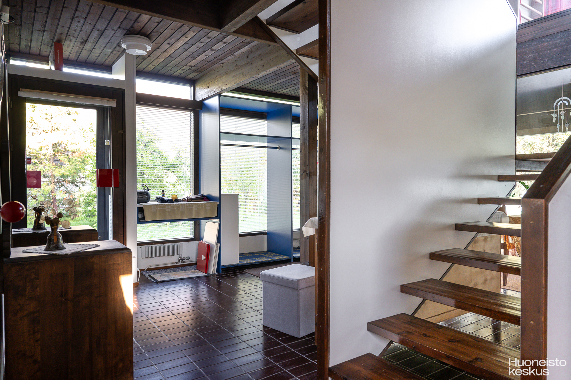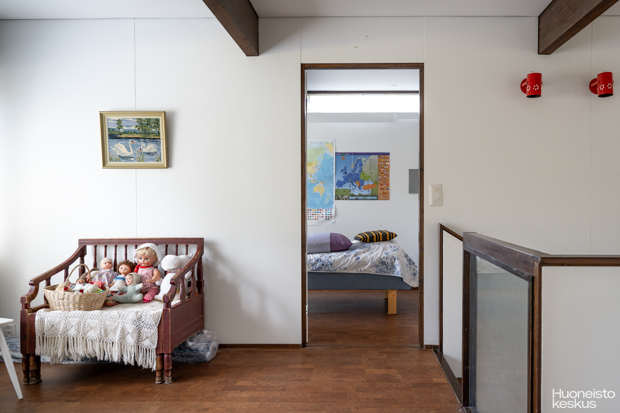Vuonna 1973 valmistunut talo on kahdessa kerroksessa ja sen 300 neliömetrin asuintilat tarjoavat runsaasti tilaa suuremmallekin perheelle. Talossa on kuusi makuuhuonetta, joten jokaiselle perheenjäsenelle löytyy oma rauhallinen tila. Olohuoneen takka luo lämpöä ja tunnelmaa viileisiin iltoihin.