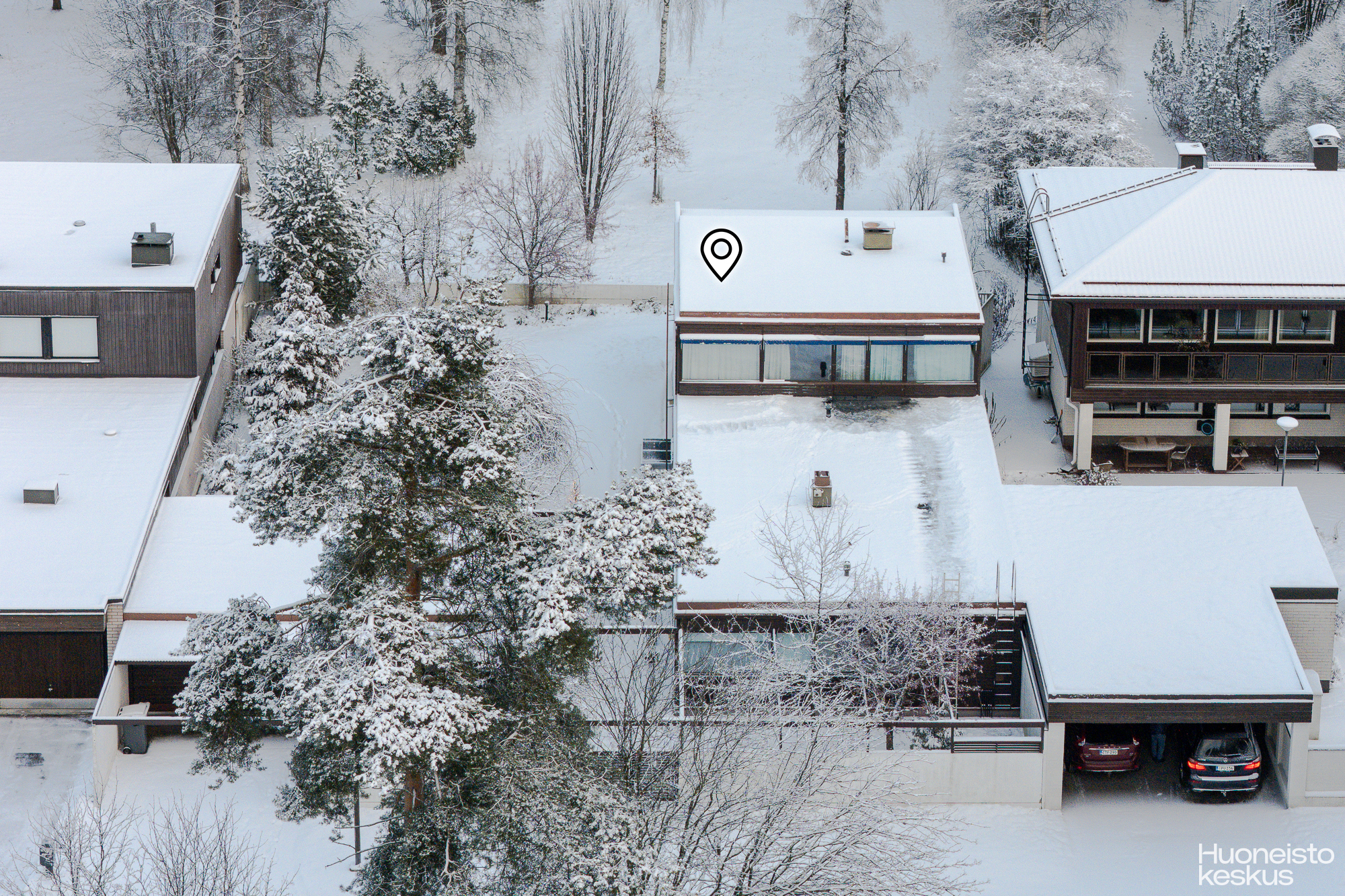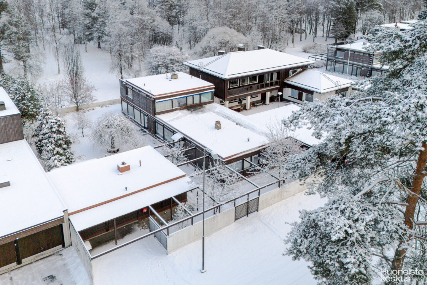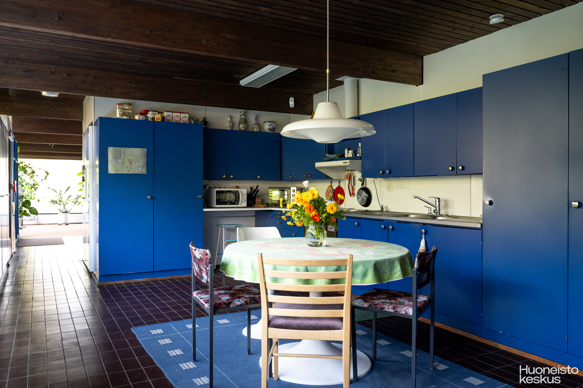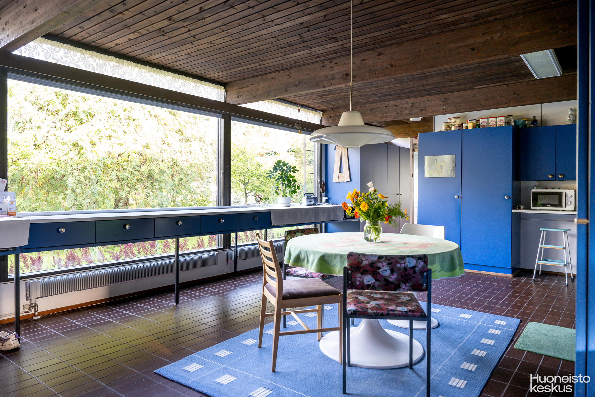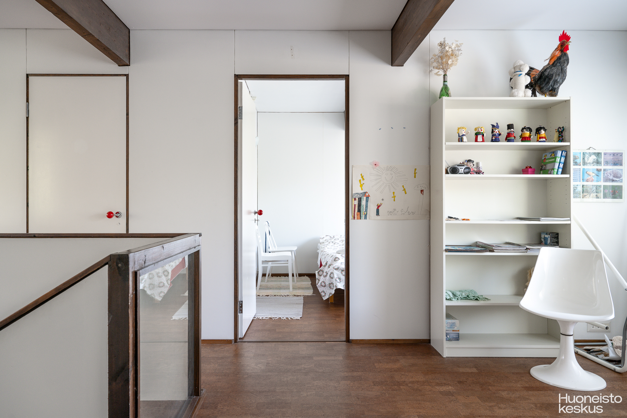 Vuonna 1973 valmistunut talo on kahdessa kerroksessa ja sen 300 neliömetrin asuintilat tarjoavat runsaasti tilaa suuremmallekin perheelle. Talossa on kuusi makuuhuonetta, joten jokaiselle perheenjäsenelle löytyy oma rauhallinen tila. Olohuoneen takka luo lämpöä ja tunnelmaa viileisiin iltoihin.