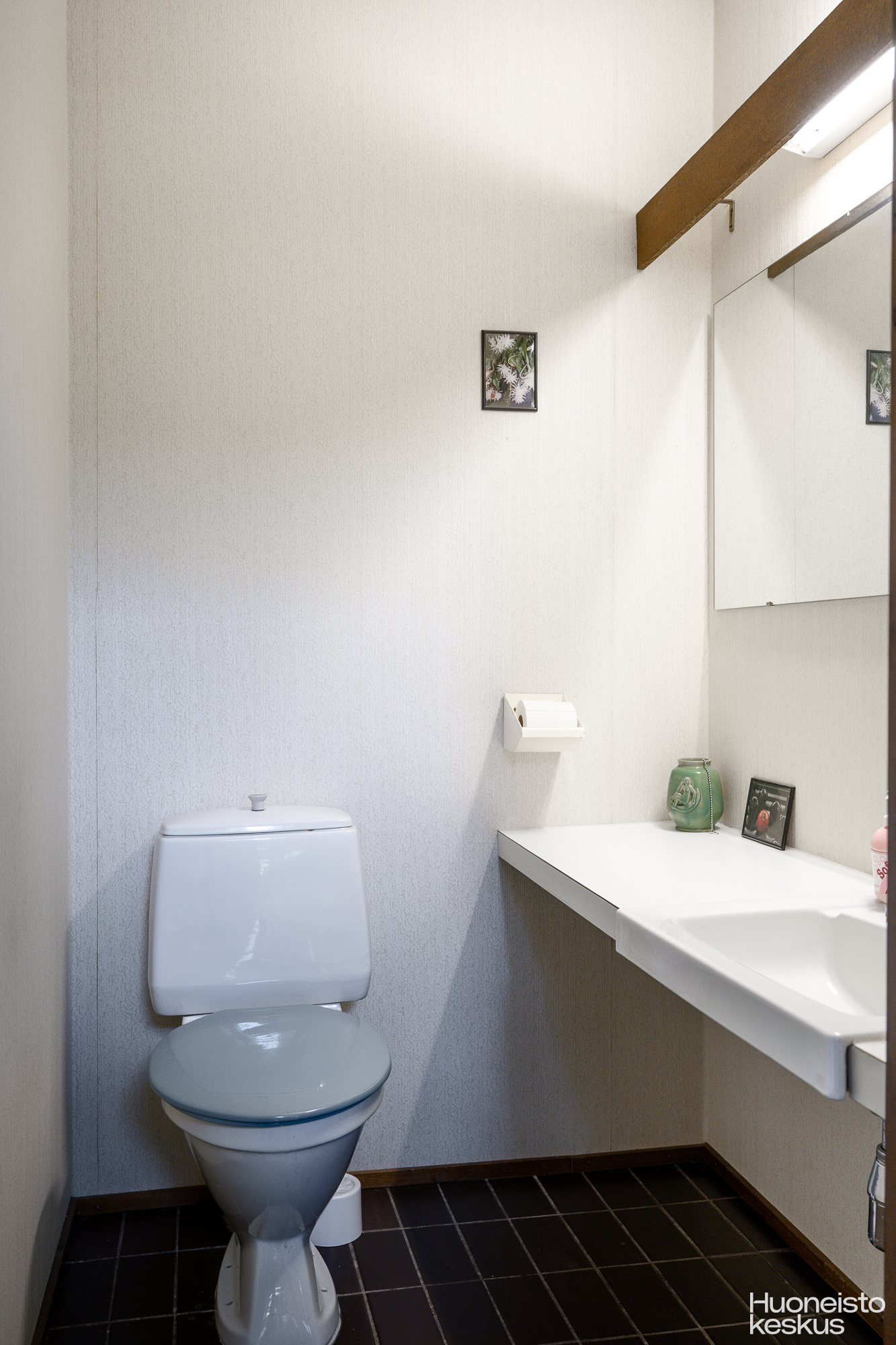 | WC-tilojen kuvaus | Lukumäärä: 3, WC-istuin ja peili, seinät (Tapetti), lattiat (Laatta ja muovimatto) |