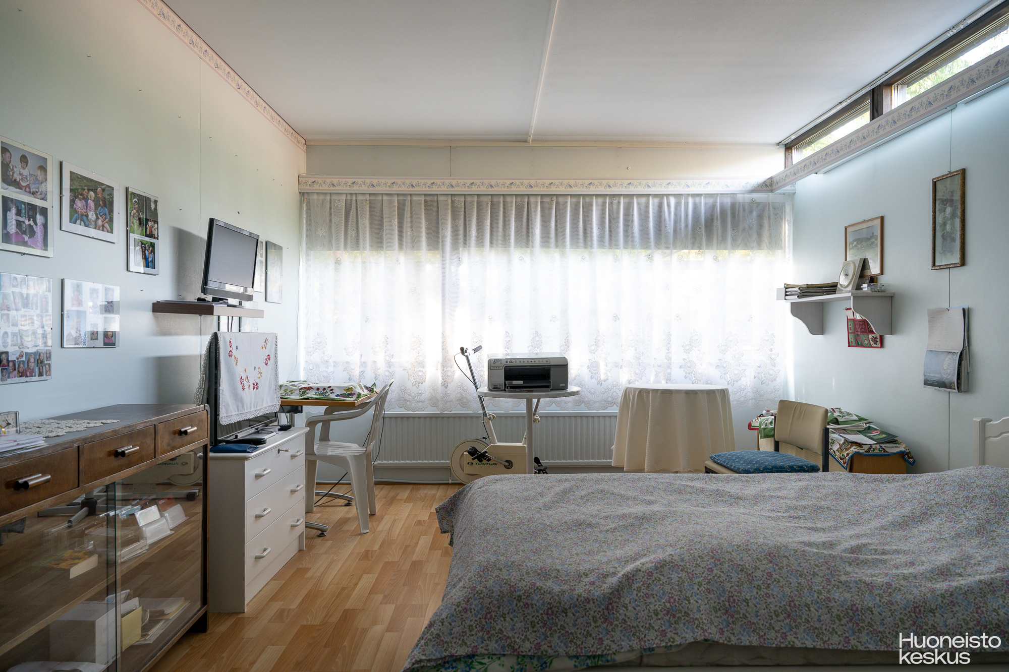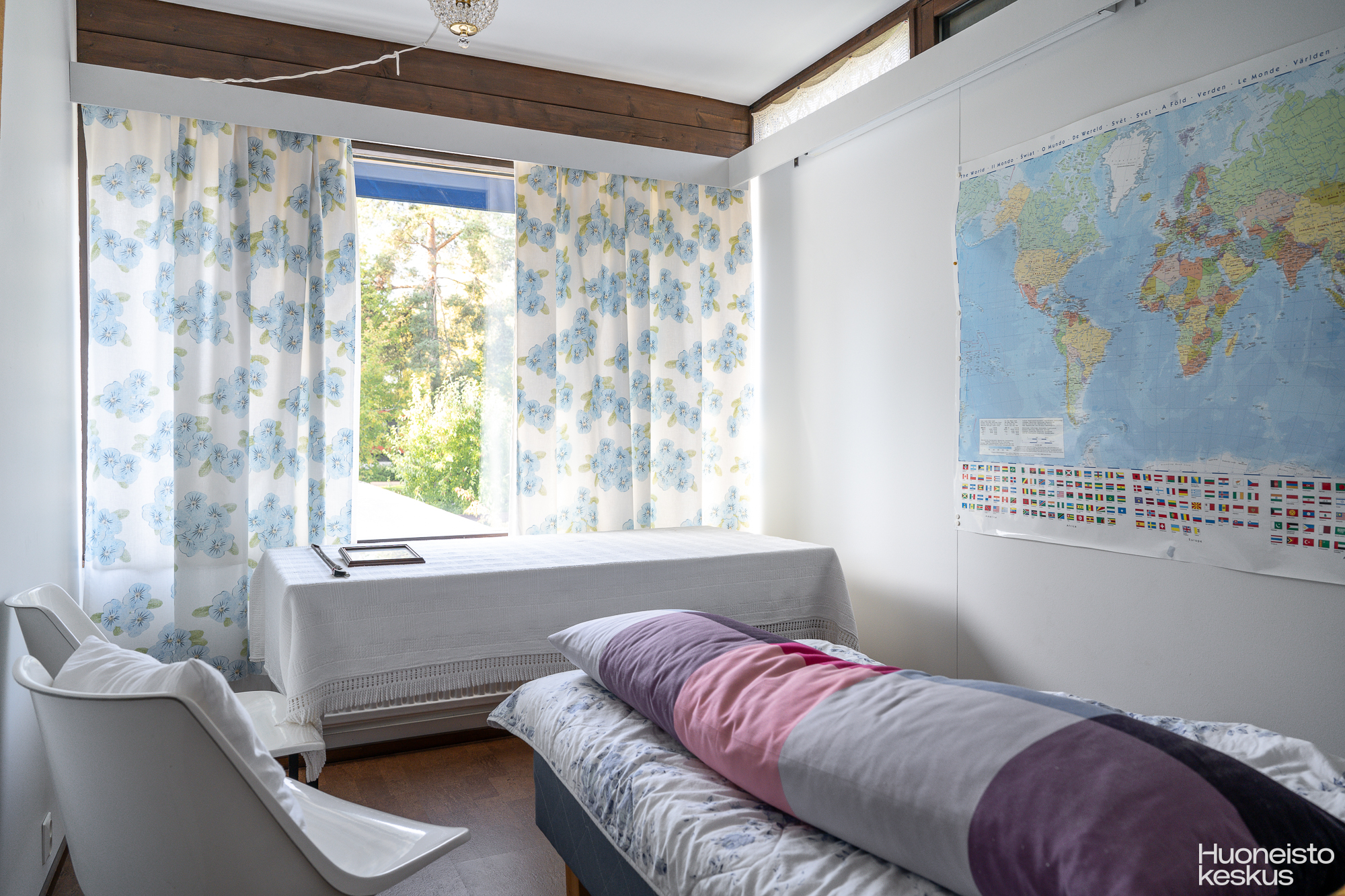 | Makuuhuoneen kuvaus | Lukumäärä: 5, seinät (maali), lattiat (muovimatto, laminaatti ja korkkimatto) |
