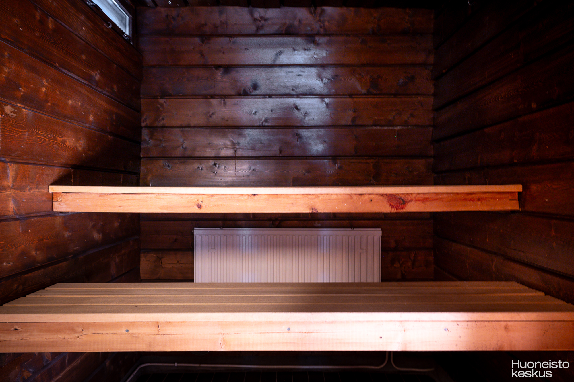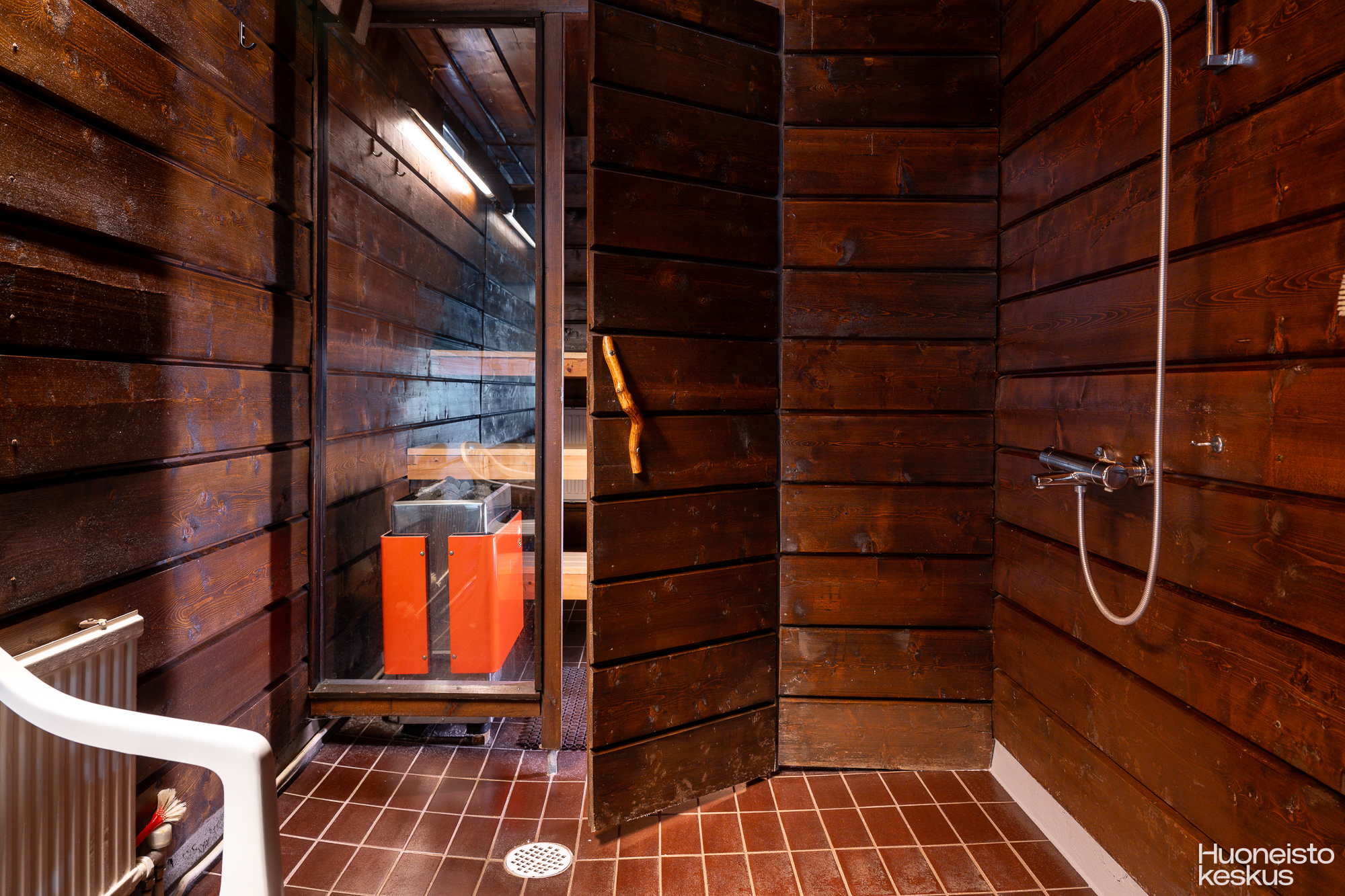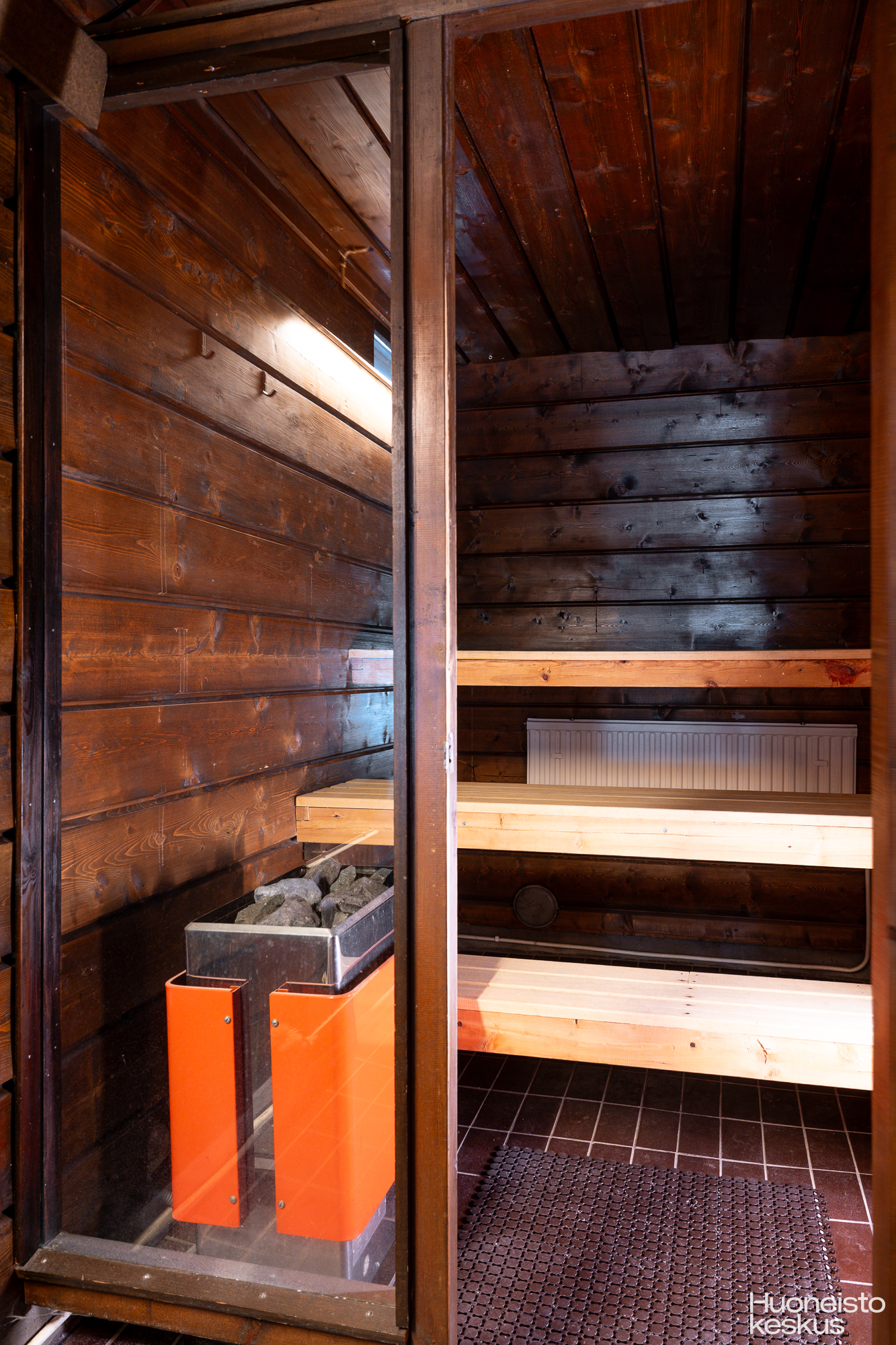 | Saunan kuvaus | Seinät (puu), lattiat (laatta), Sähkökiuas |