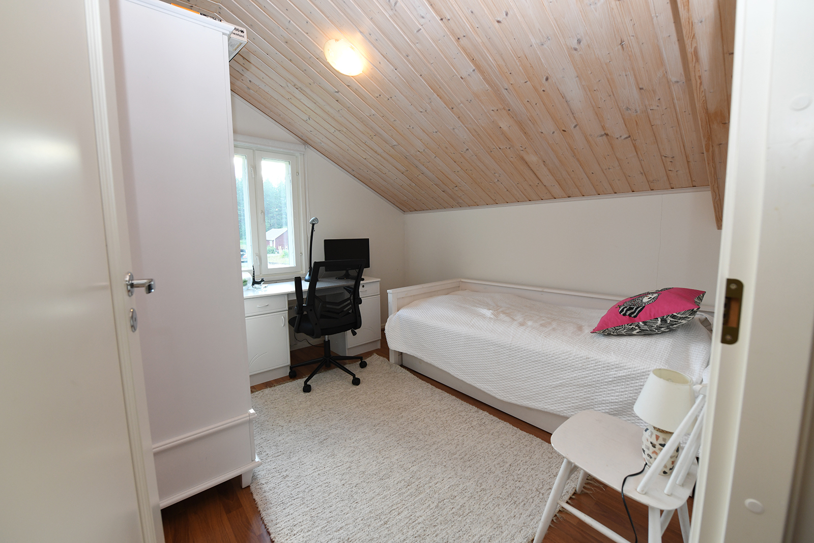 Mukavalla paikalla, komein näkymin Syvärille, todella tilava ja valoisa omakotitalo vuodelta 2012. Talossa on yhteensä viisi makuuhuonetta ja iso parvi. Täällä on siis tilaa isommallekin perheelle. Osin katettua terassitilaa on rakennuksen kahdella sivulla. Oma, iso tontti 5 125 m2, josta osa on luonnontilaista metsää. Pihapiirissä on erillinen varasto ja puuvaja. Viereisestä kaupungin venevalkamasta on mahdollista vuokrata venepaikka.
