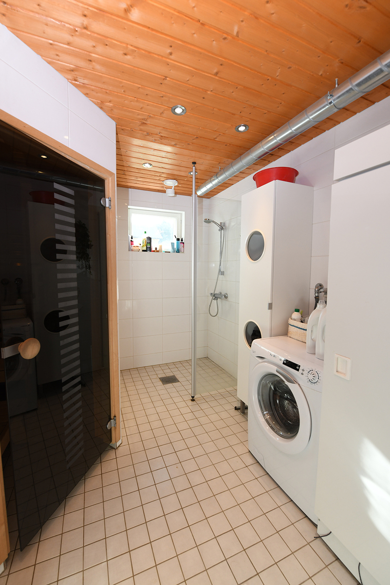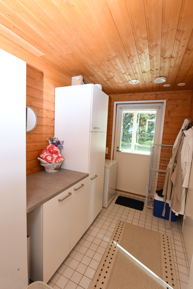 | Kodinhoitohuoneen kuvaus | Pesukoneliitäntä, pöytätaso, lattiakaivo ja lattialämmitys, lattiat (laatta), seinät (puu ja maali) |