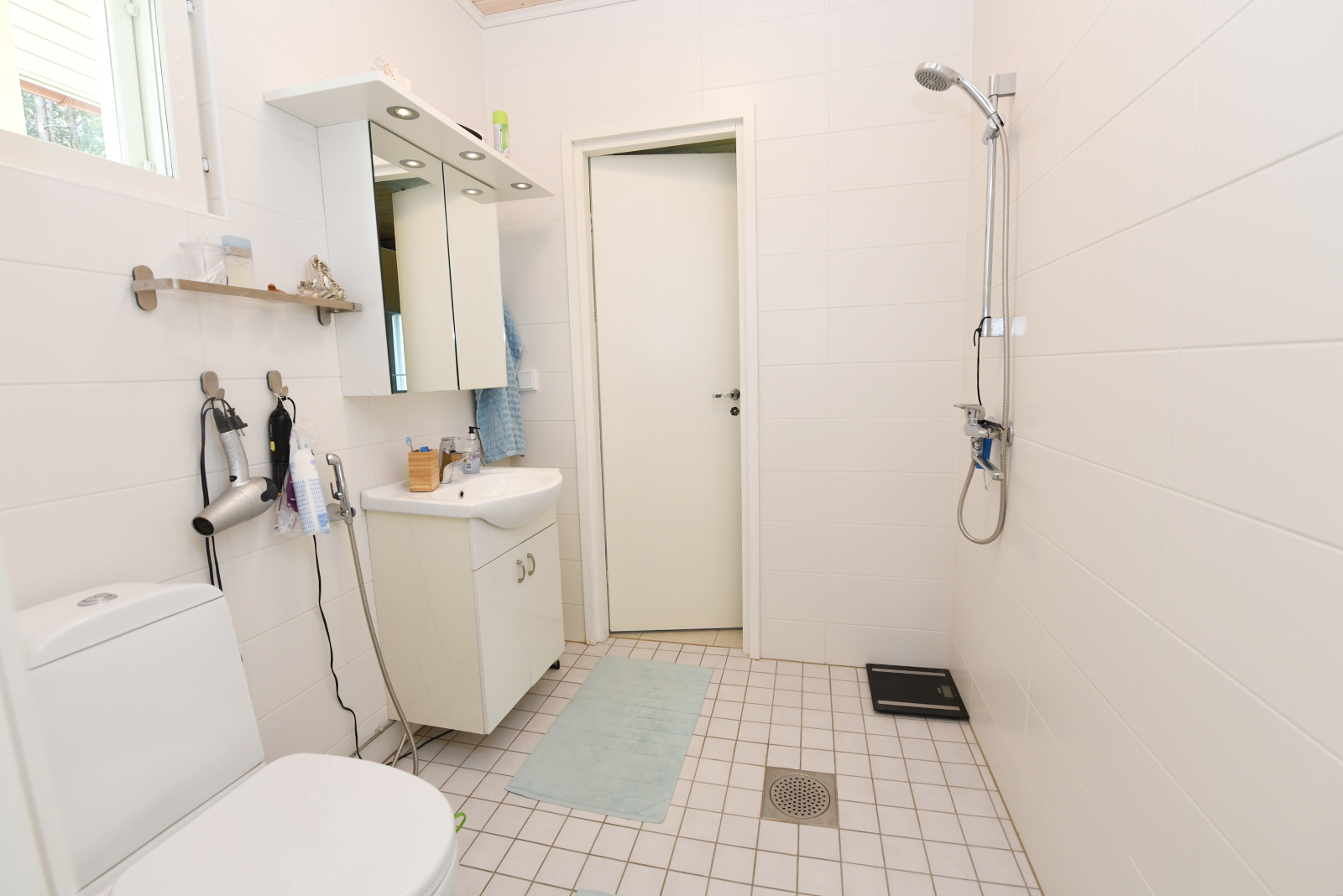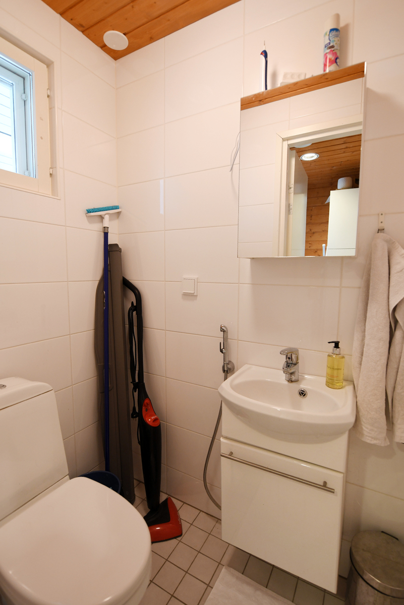 | Kylpyhuoneen kuvaus | Suihku, lattialämmitys, wc-istuin ja kiinteät valaisimet, seinät (kaakeli), lattiat (laatta) |
