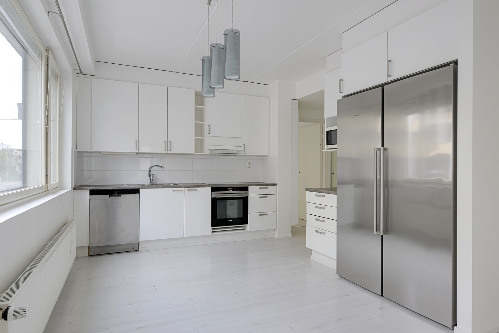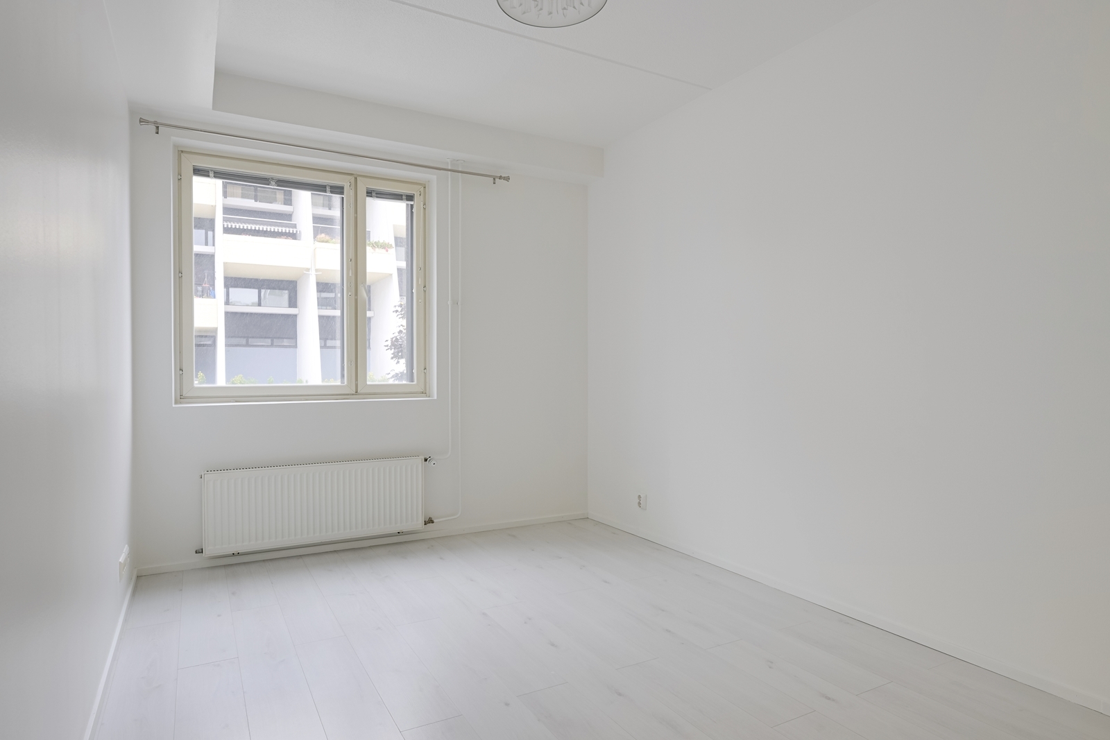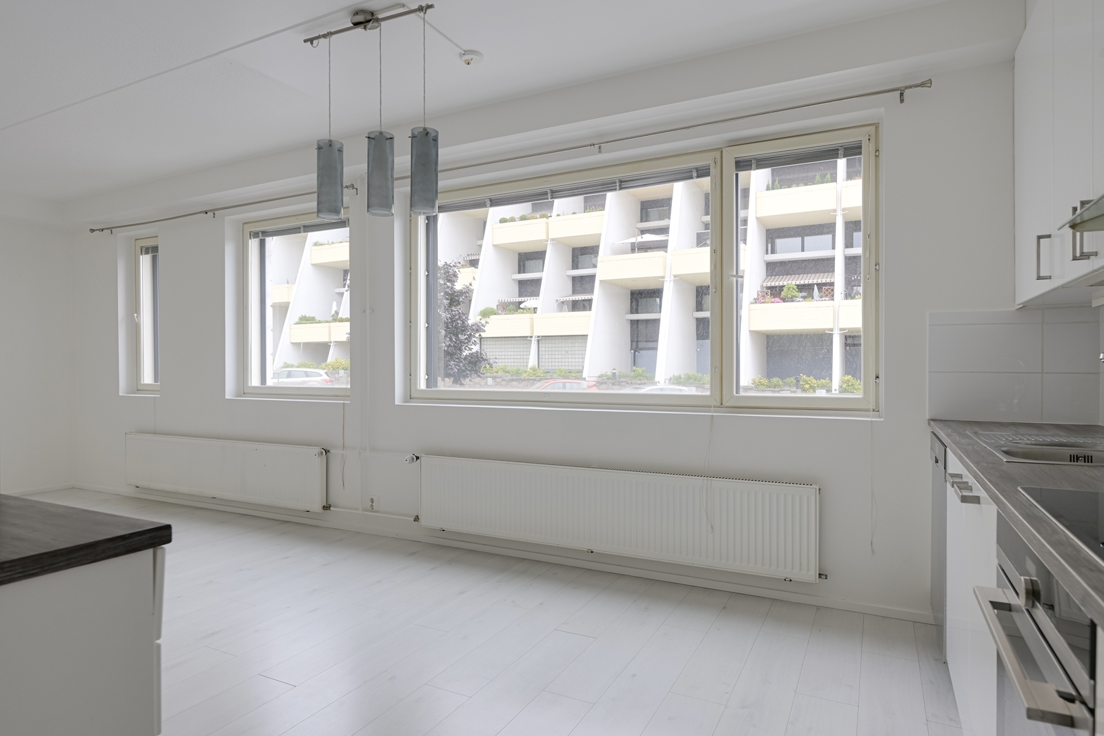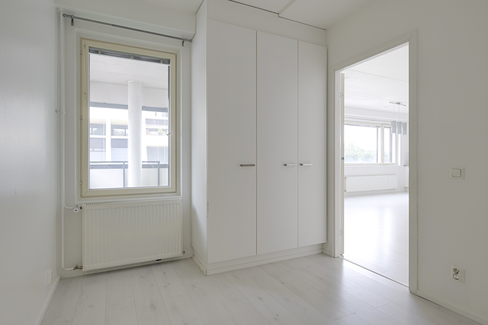 Tilavat ja valoisat huoneet, hyvät säilytystilat, lisäksi lasitettu parveke.