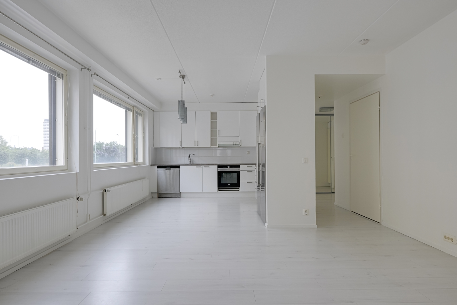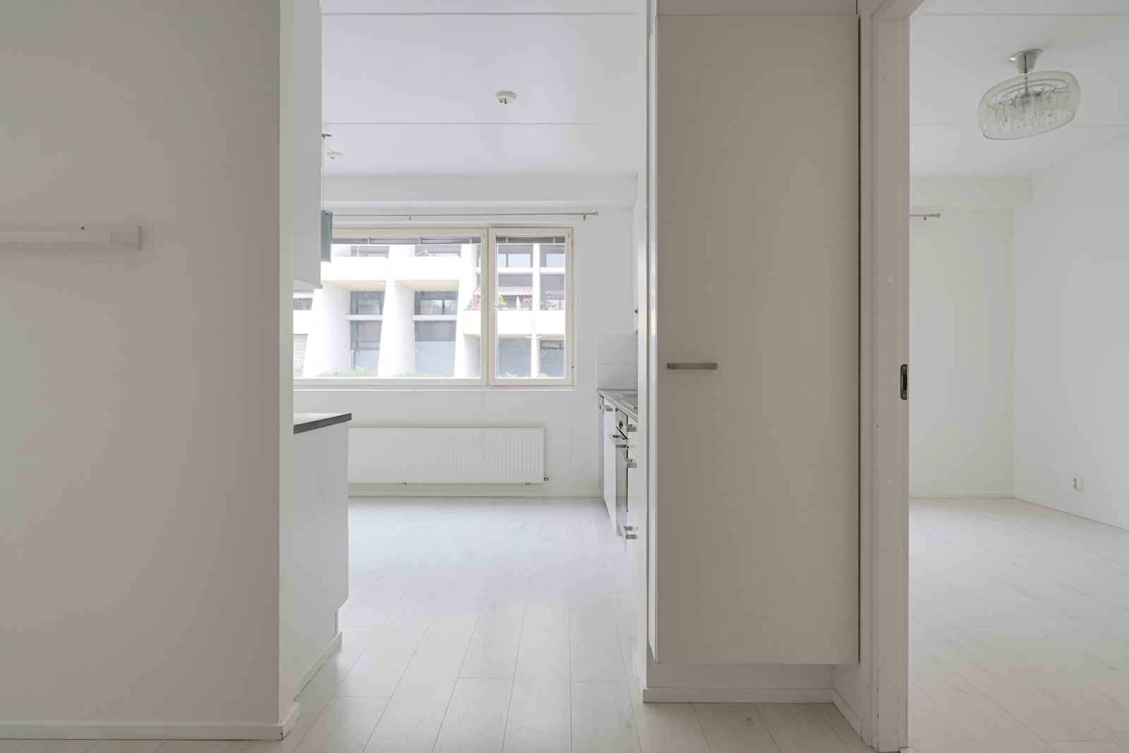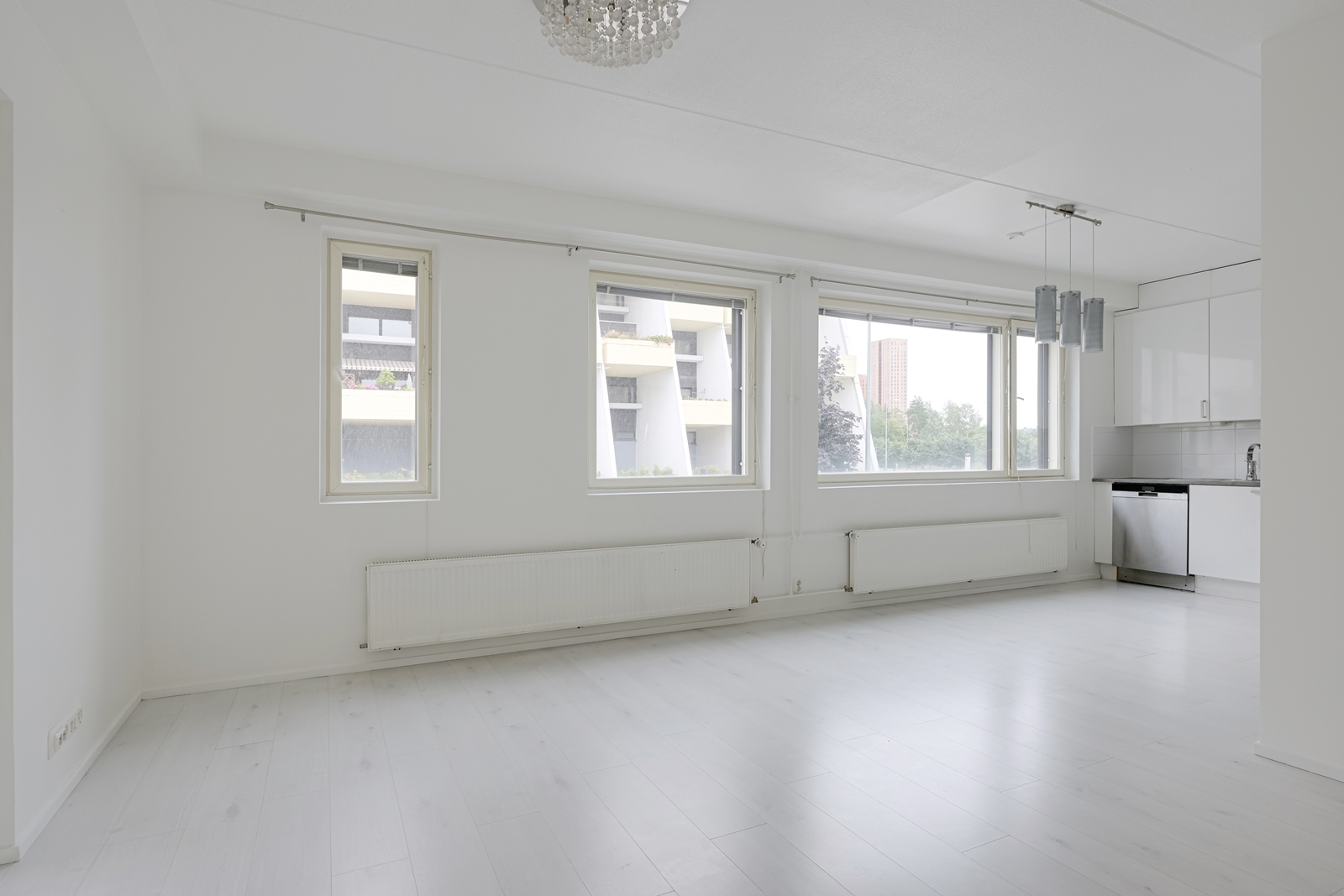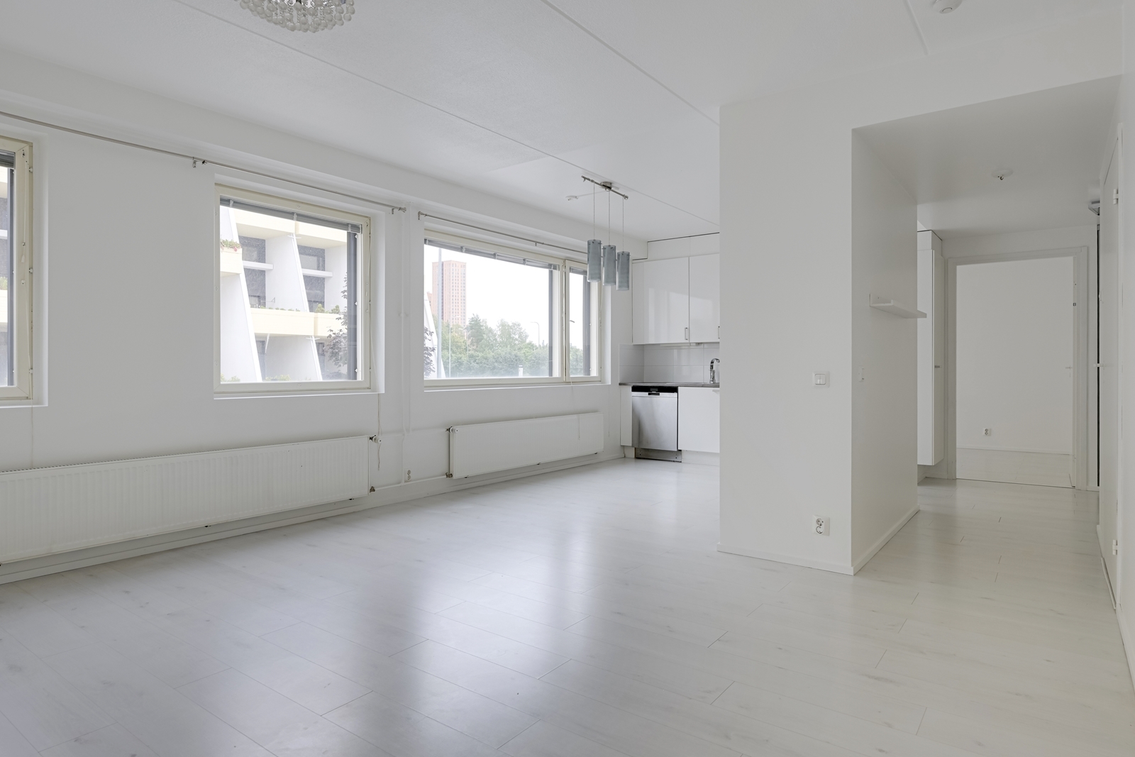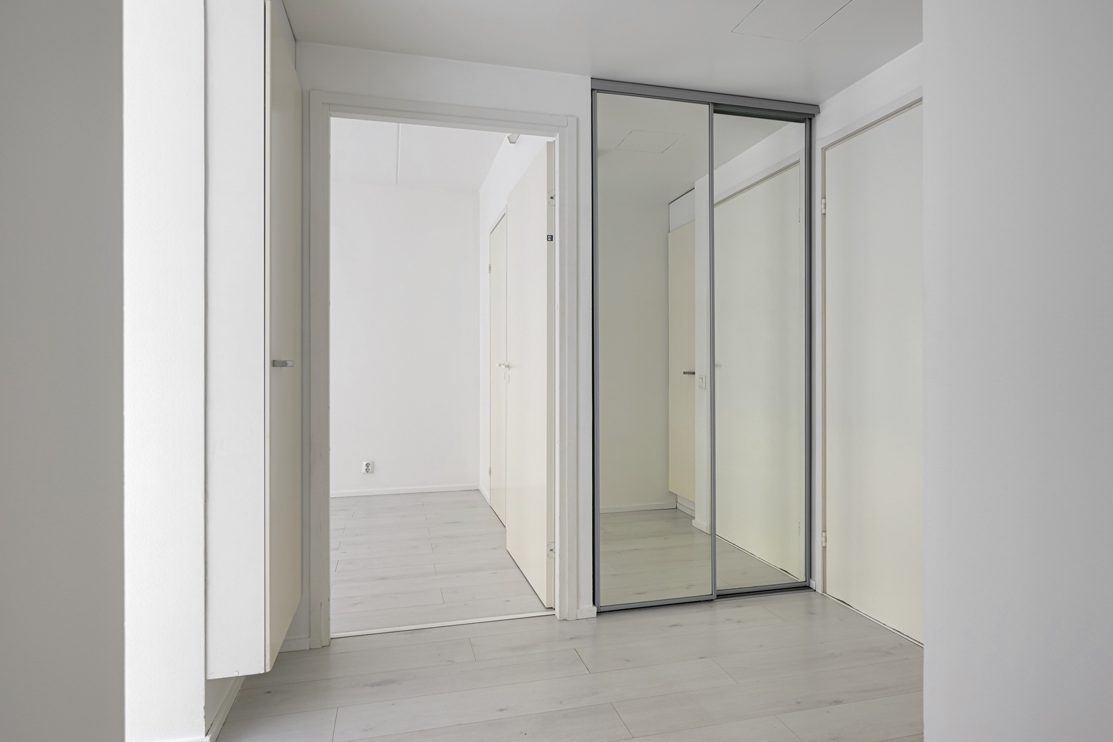 Tilavat ja valoisat huoneet, hyvät säilytystilat, lisäksi lasitettu parveke.