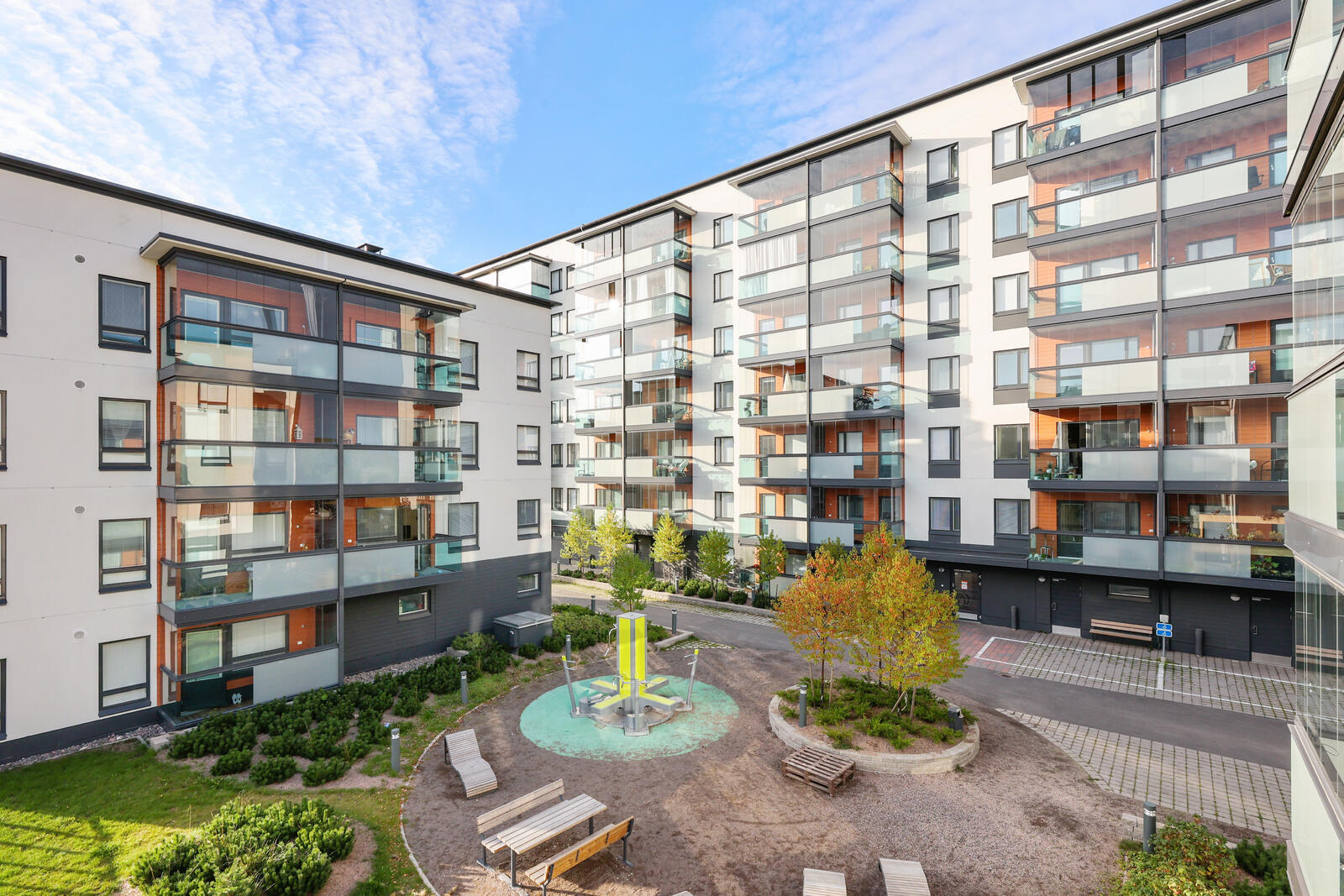 Tämän vuonna 2020 valmistuneen kohteen sijainti alueella on hyvä, alueelta on toimivat yhteydet moneen suuntaan. Kauniaisten keskustasta löytyy kauppakeskus Grani, jossa on päivittäistavarakauppoja, erikoisliikkeitä, kahviloita ja ravintoloita. Kauppakeskukset Sello ja Entresse ovat myöskin helposti saavutettavissa joko junalla tai omalla autolla.