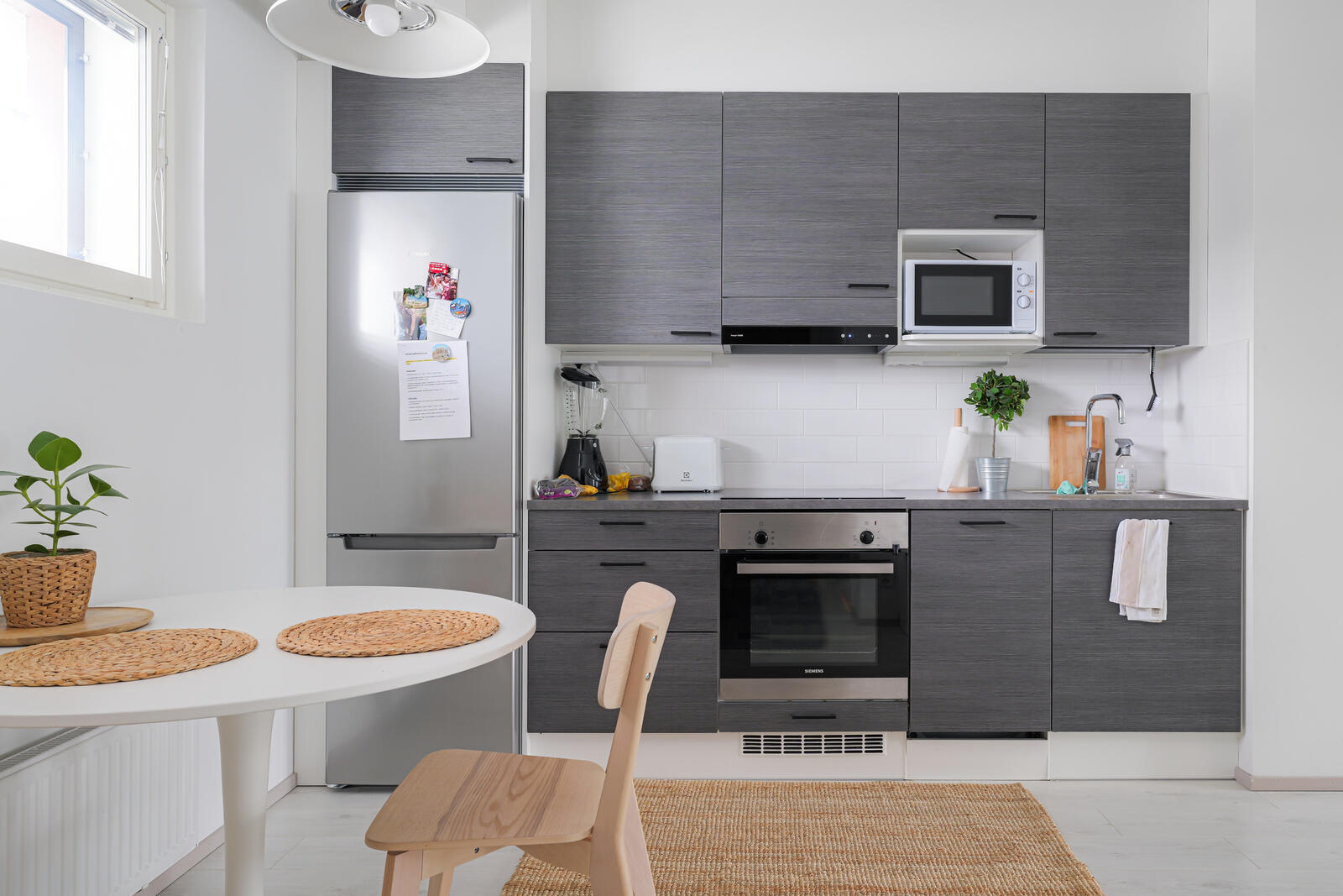 | Keittiön kuvaus | Liesi (Keraaminen liesi), työtasot (laminaatti), seinät (maali ja osalaatoitus), lattiat (laminaatti), jääkaappipakastin, liesituuletin ja kiinteät valaisimet |