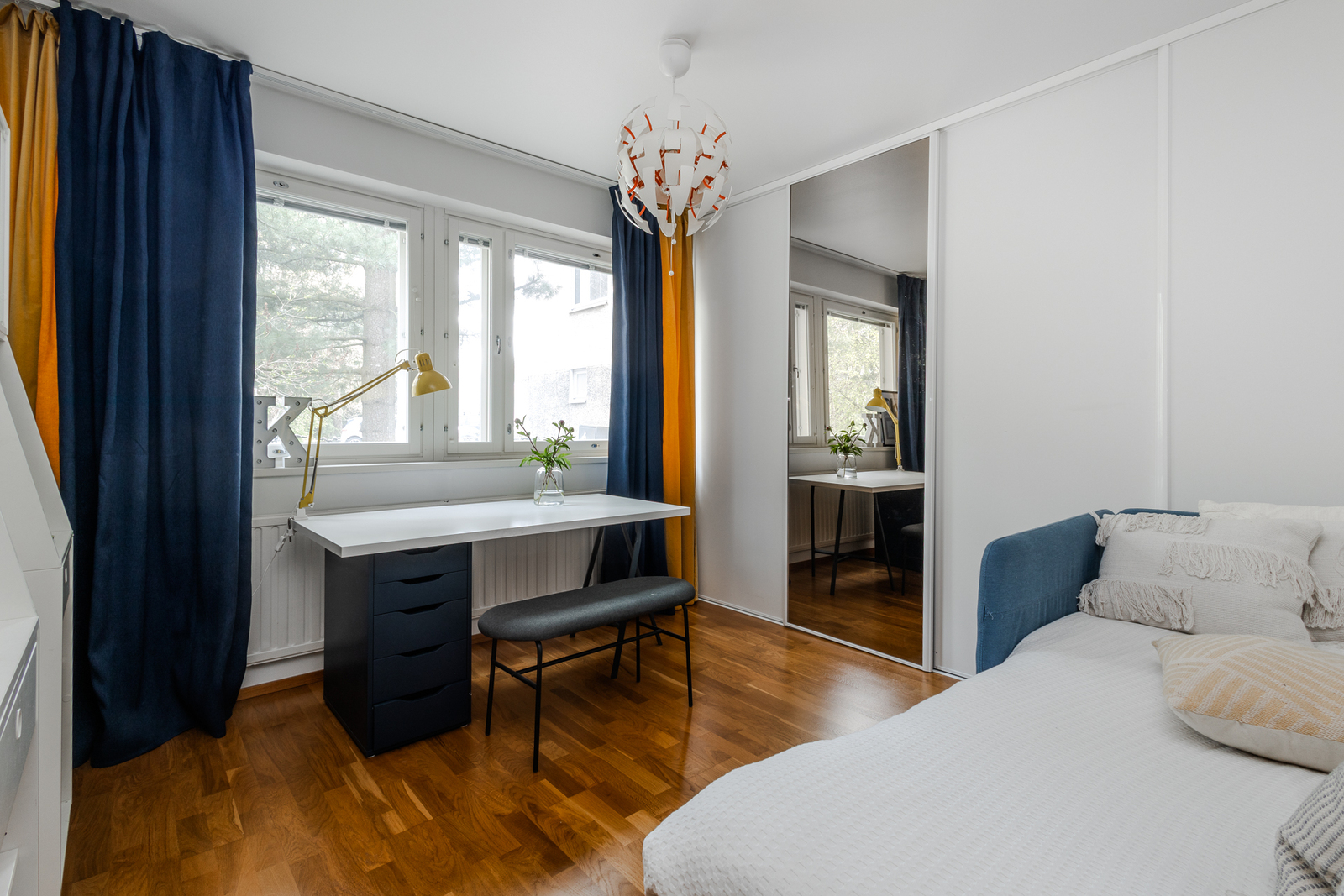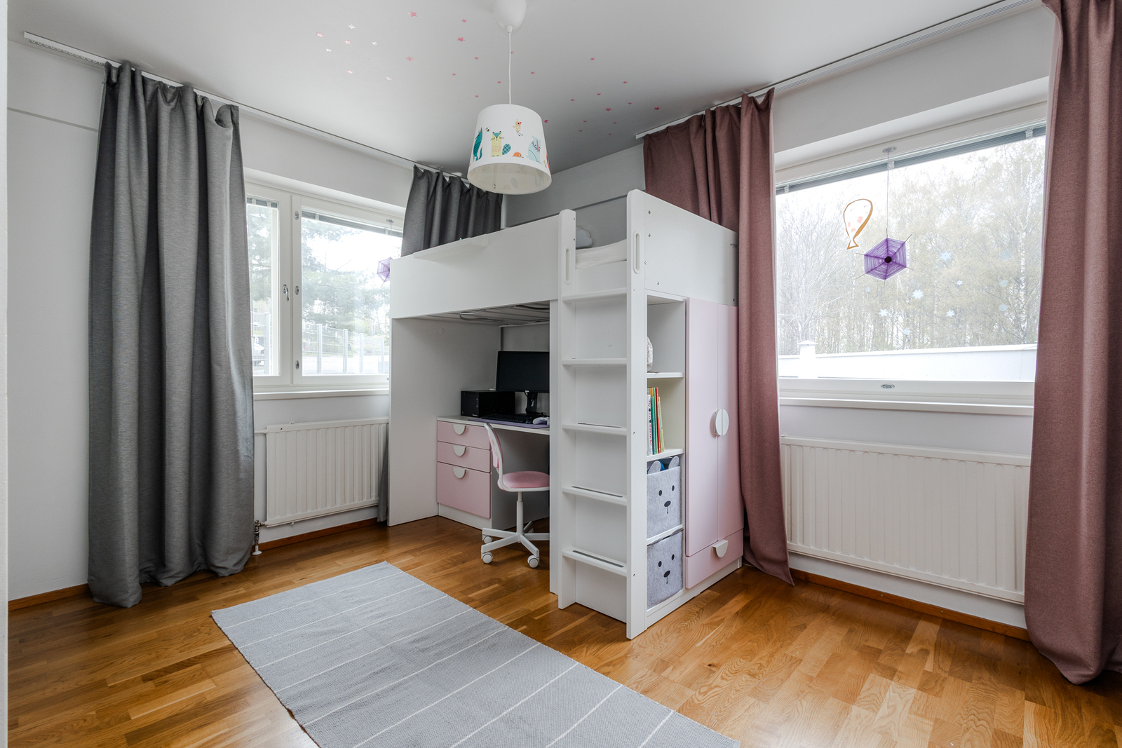 | Makuuhuoneen kuvaus | Lukumäärä: 4, seinät (maali), lattiat (parketti) |