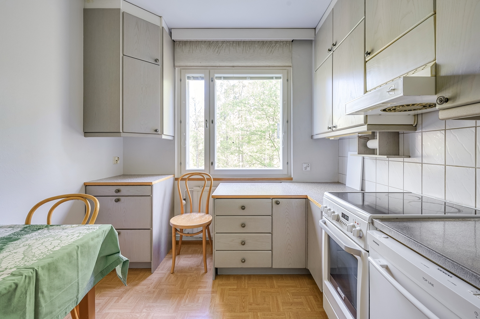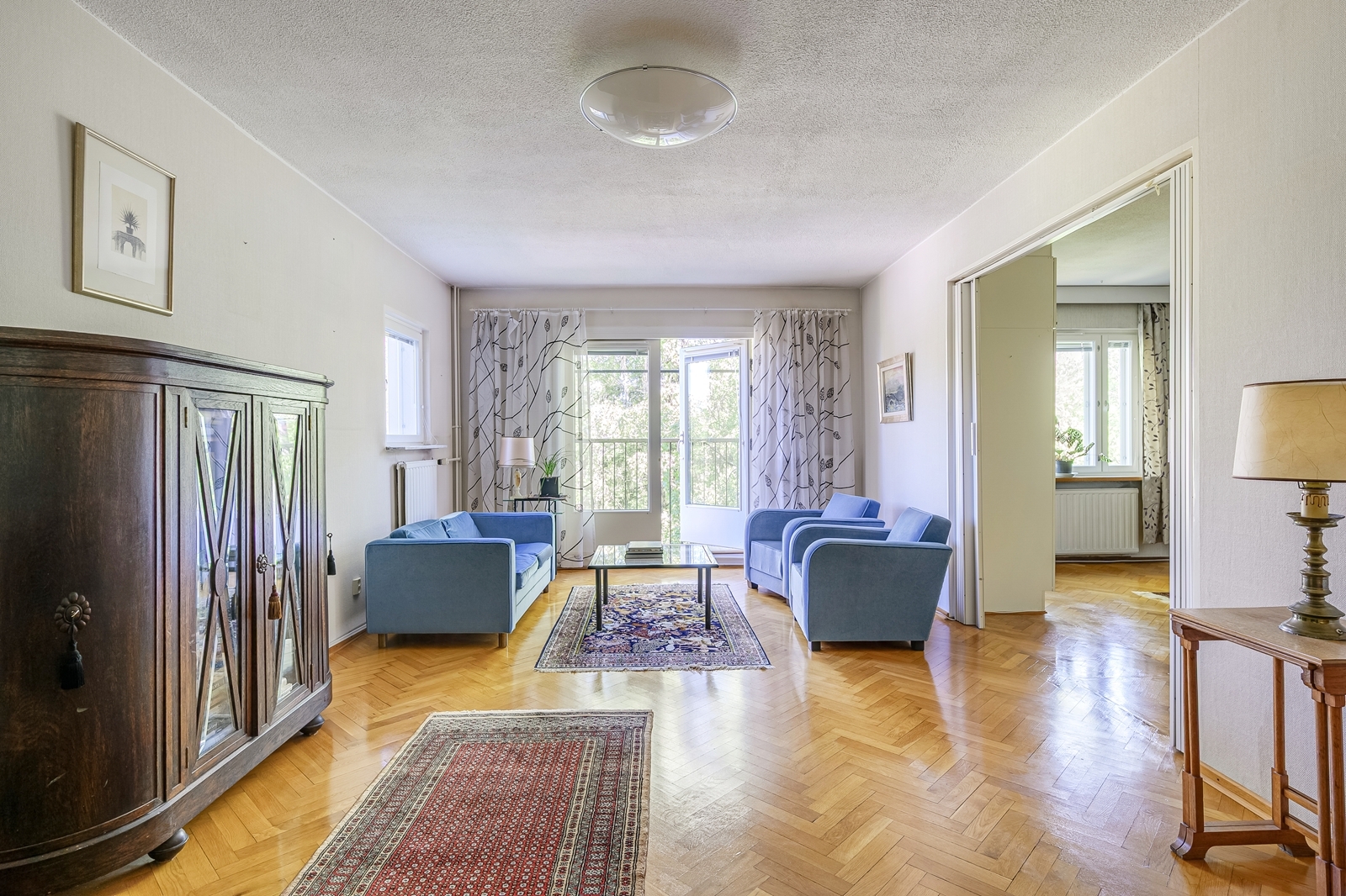 Tämä tilava ja toimiva perhehuoneisto sijaitsee rauhallisella alueella, jossa arki sujuu mutkattomasti. Esteetön kulku hissille takaa helpon liikkumisen ja tekee asunnosta erinomaisen valinnan myös pitkäaikaiseen asumiseen.
