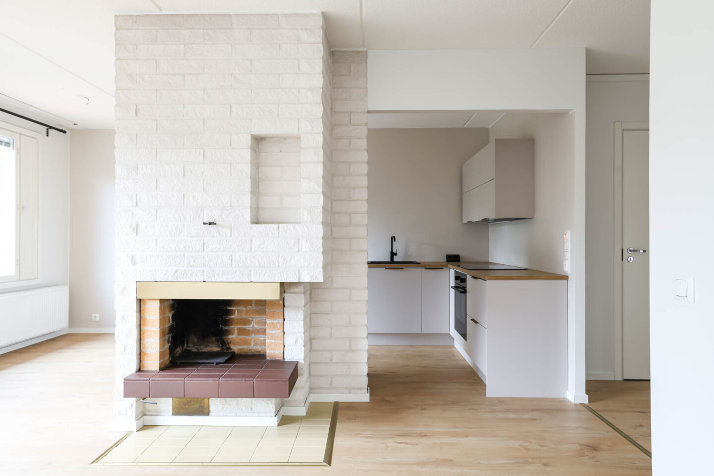 | Tehdyt remontit | Huoneisto on remontoitu kauttaaltaan vuonna 2024: – Keittiö käyttövesiputkineen on remontoitu, sähkövetoja uusittu ja sähköpistokkeita lisätty – Kylpyhuone remontoitu myös täysin (sis. käyttövesiputket ja viemärit). – Huoneiston lattia on vaihdettu, seinäpinnat maalattu, keittiön ja ruokailutilan välinen seinä kaadettu ja katto maalattu. – Makkarin kaapistoon on asennettu peiliovet ja eteisen kaapisto uusittu. Terassi uusittu 2025. |