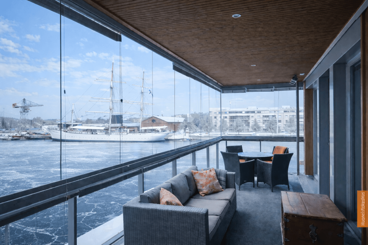 Muuttovalmis ja tyylikäs koti tarjoaa laadukasta ja vaivatonta asumista merellisessä ympäristössä, vain noin 20 minuutin kävelymatkan päässä Turun torilta. Asunnon toimiva pohjaratkaisu ja suuret ikkunapinnat tuovat runsaasti luonnonvaloa, ja viihtyvyyttä lisäävät kaksi lasitettua parveketta – toinen länteen ilta-aurinkoon ja toinen pohjoisen suuntaan. Kauniit saarni-parkettilattiat asuintiloissa. Kummaltakin lasitetulta parvekkeelta Aurajokinäkymät. Huoneistokohtainen viilennys tuo kuumimpiin kesäpäiviin helpotusta.