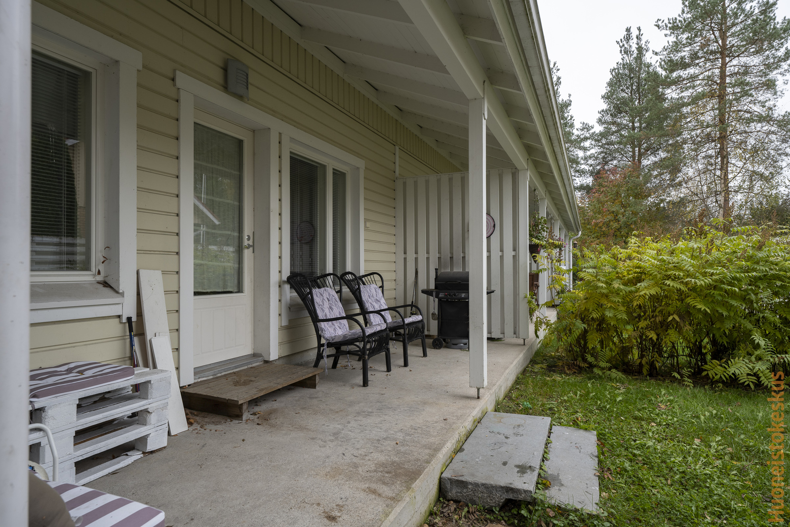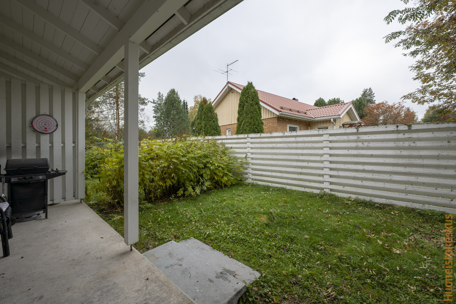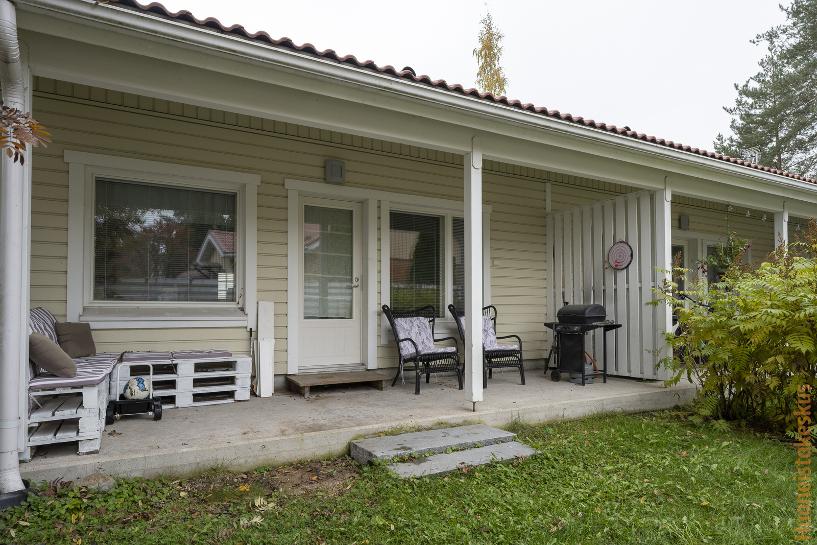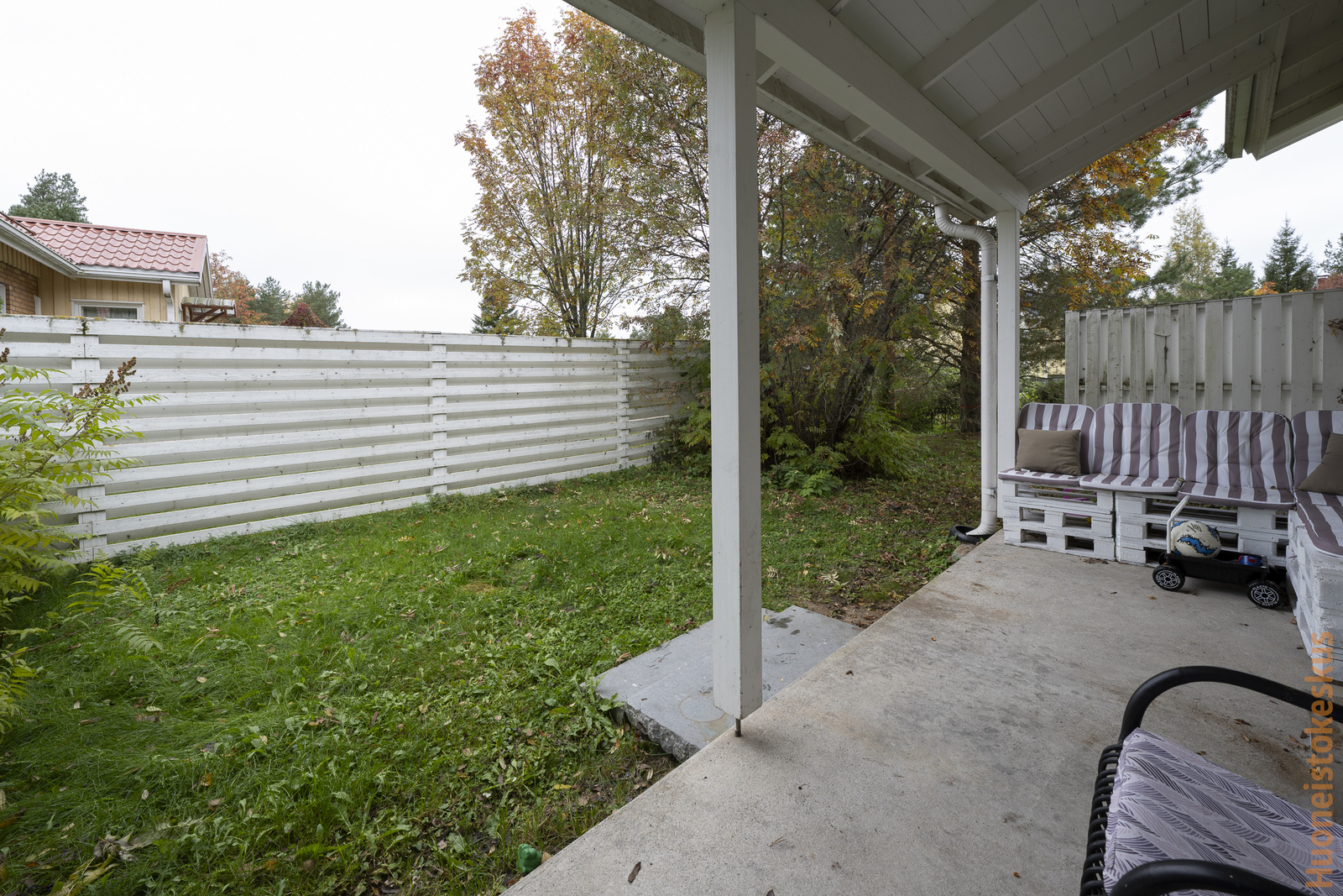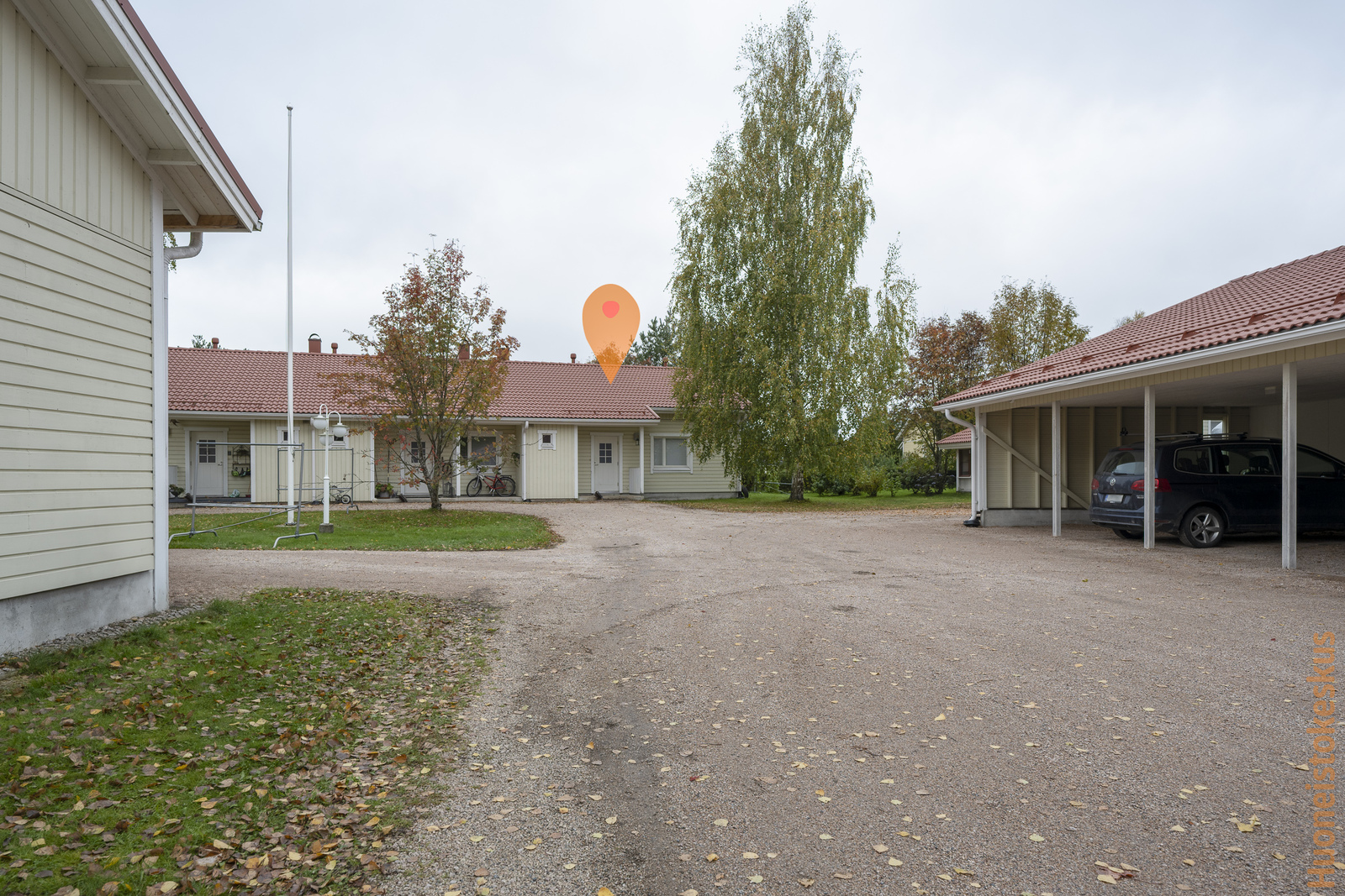 Autokatospaikka sisältyy hintaan ja oma ulkovarasto löytyy sisäänkäynnin vierestä.