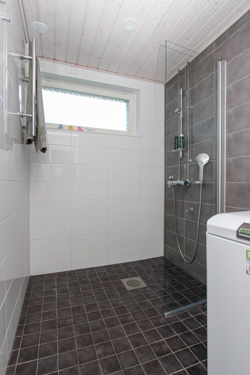 Pesukoneliitäntä, suihkuseinä, wc-istuin, allaskaappi, lattialämmitys, peilikaappi, suihku ja kiinteät valaisimet, seinät (kaakeli), lattiat (laatta), Tilava ja tyylikäs, ikkunallinen kylpyhuone, joka remontoitu v.2021. Suihkutila ja pesukonepaikka kylpyhuoneen perällä hieman eri tilana ja Wc tila kätevästi heti kylpyhuoneeseen tultaessa. |