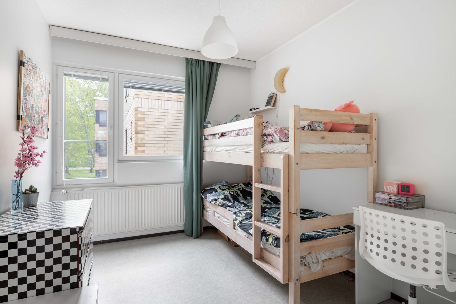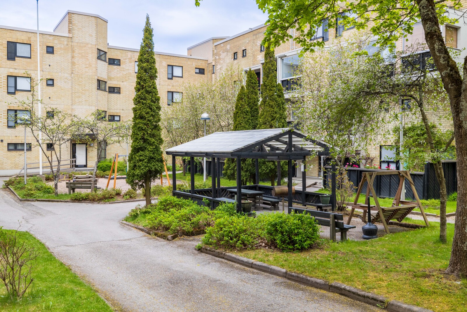 Yhtiön sisäpiha on turvallinen lapsille. Pohjois-Haagan asema ja bussipysäkit ovat muutan minuutin kävelyn päässä ja Kaaren kauppakeskuksen monipuoliset palvelut ovat myös lähellä.