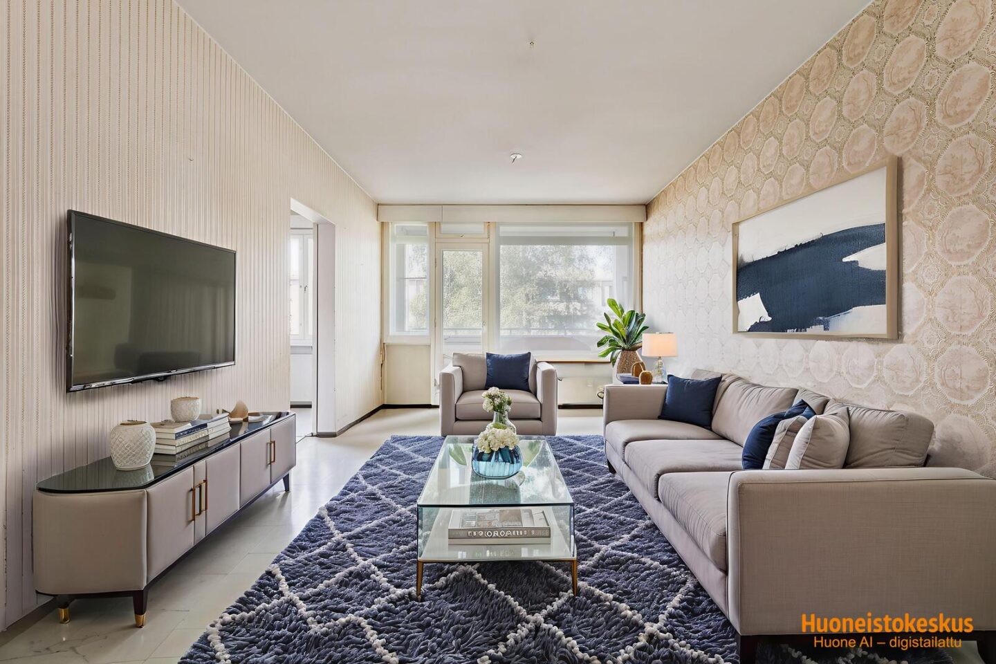 Keittiö on tilava, sinne mahtuu hyvin myös ruokapöytä. Ison olohuoneen jatkeena on lasitettu parveke, jossa harmoniset näkymät yhtiön viherpihalle. Tässä kodissa on kolme makuuhuonetta ja niistä yhdessä on ikkunallinen vaatehuone.