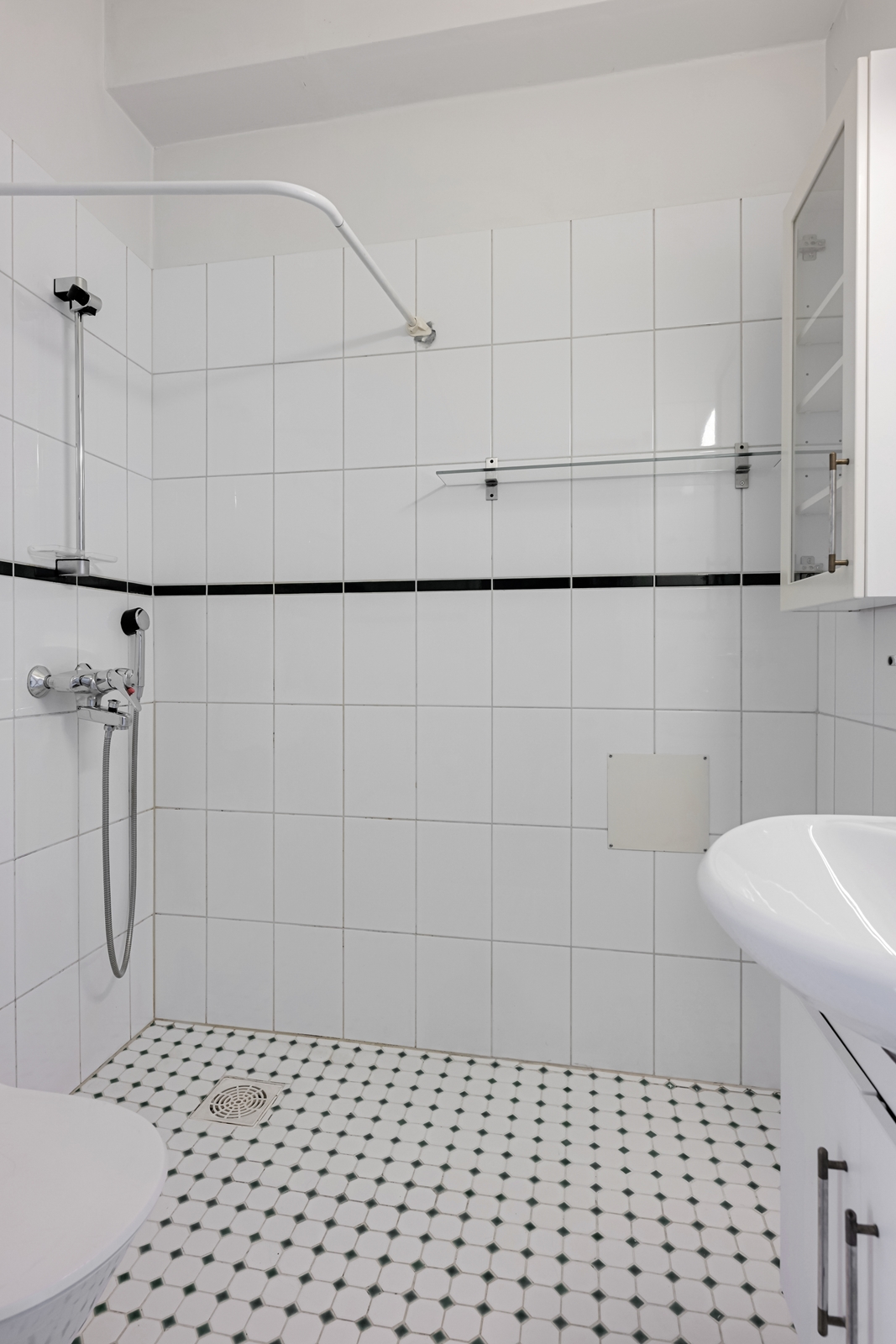 | Kylpyhuoneen kuvaus | WC-istuin, peili, pesuallas, allaskaappi, bidee-suihku, suihku ja suihkuverhotanko, seinät (kaakeli), lattiat (laatta) |