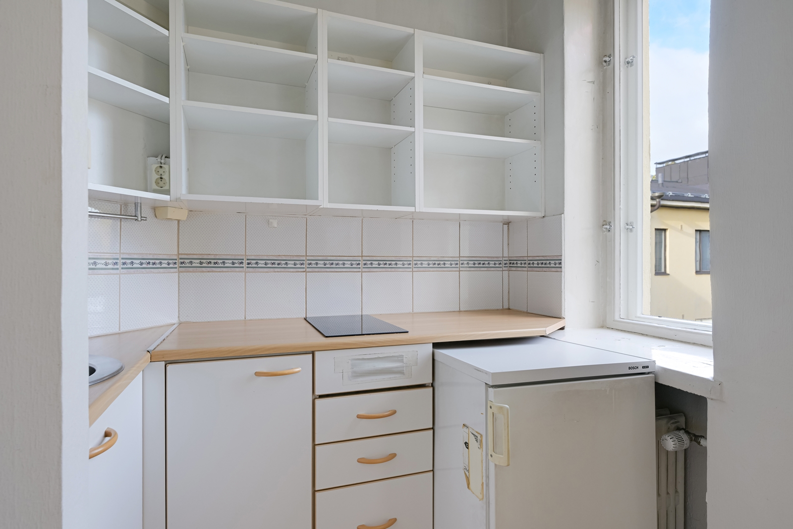 | Keittiön kuvaus | Seinät (maali), lattiat (parketti), jääkaappi ja liesitaso (2 keittoaluetta) |