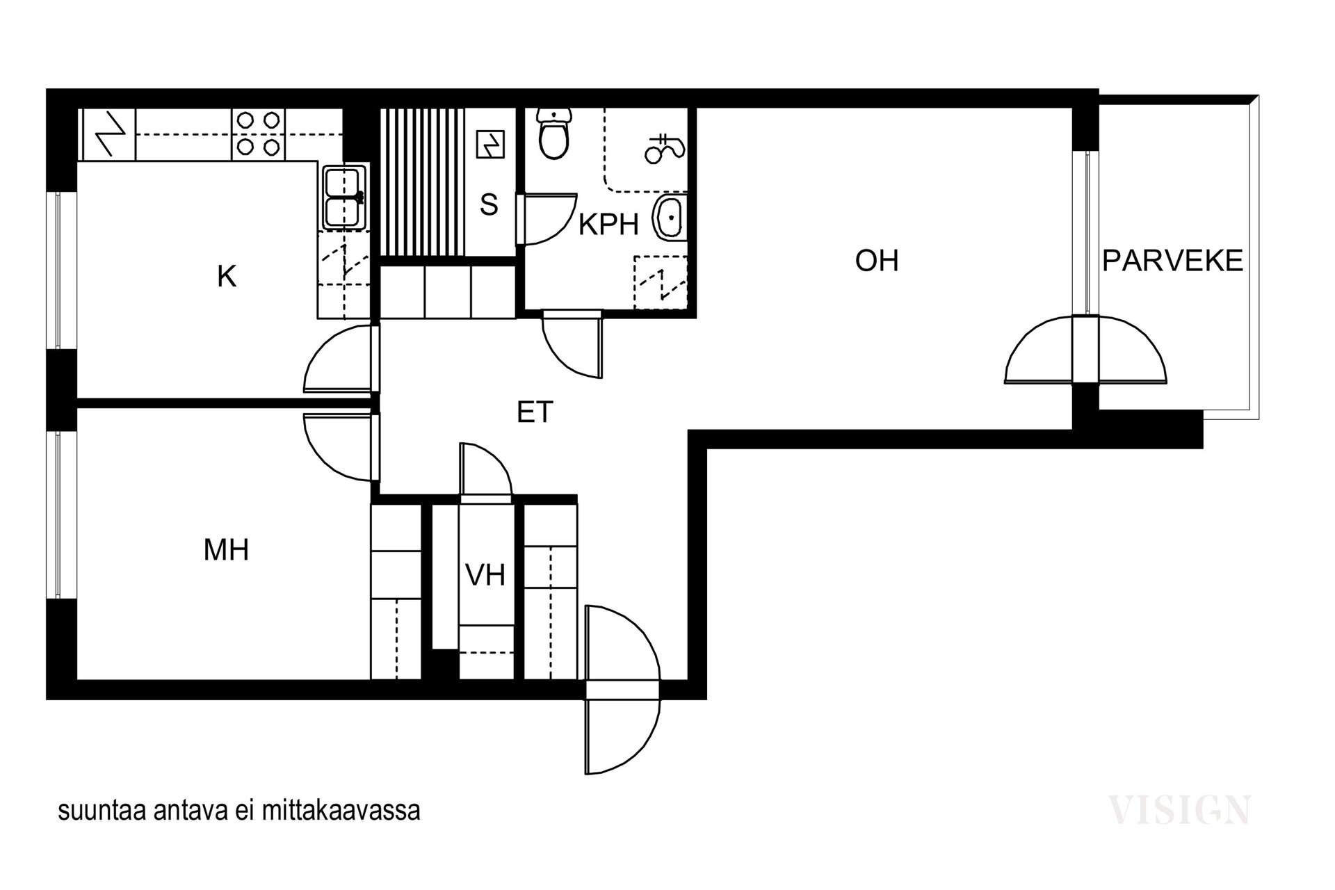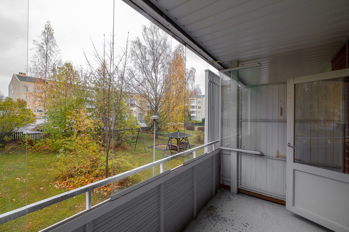 Asunnossa on toimiva pohjaratkaisu ja avarat, valoisat tilat. Olohuoneesta on käynti lasitetulle parvekkeelle, jossa voit nauttia aamukahvit tai rentoutua auringossa. Keittiössä on hyvin säilytys- ja työtilaa, ja oma sauna tarjoaa arjen luksusta.