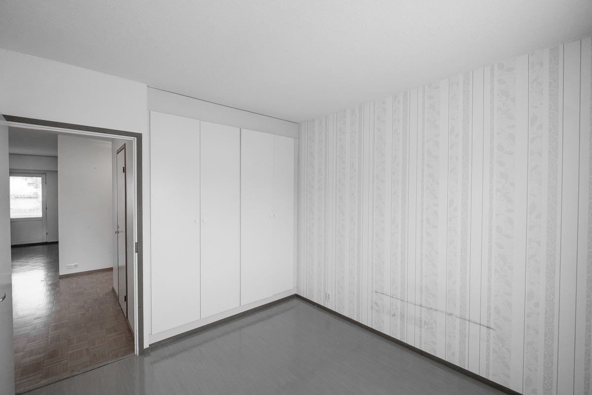 | Makuuhuoneen kuvaus | Seinät (tapetti), lattiat (muovi) |