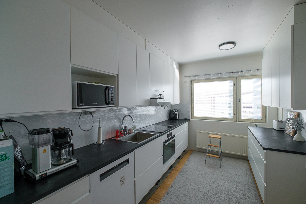 Tarjolla upea, muuttovalmis kolmio kerrostalosta erinomaisella sijainnilla. Asunnossa on tehty kattavat remontit: moderni keittiö ja tyylikäs kylpyhuone on uusittu hiljattain. Molemmissa makuuhuoneissa on käytännölliset liukuovikaapistot, jotka tuovat lisää säilytystilaa ja tilan tuntua.