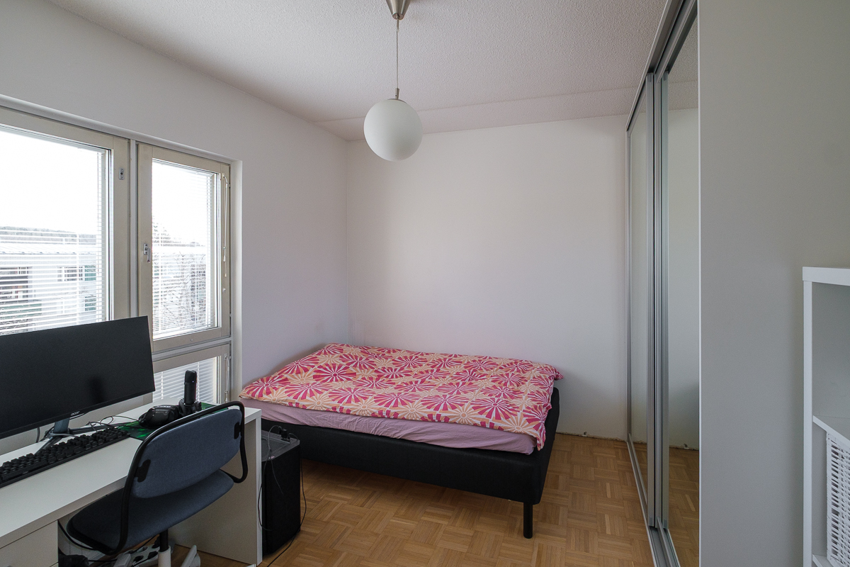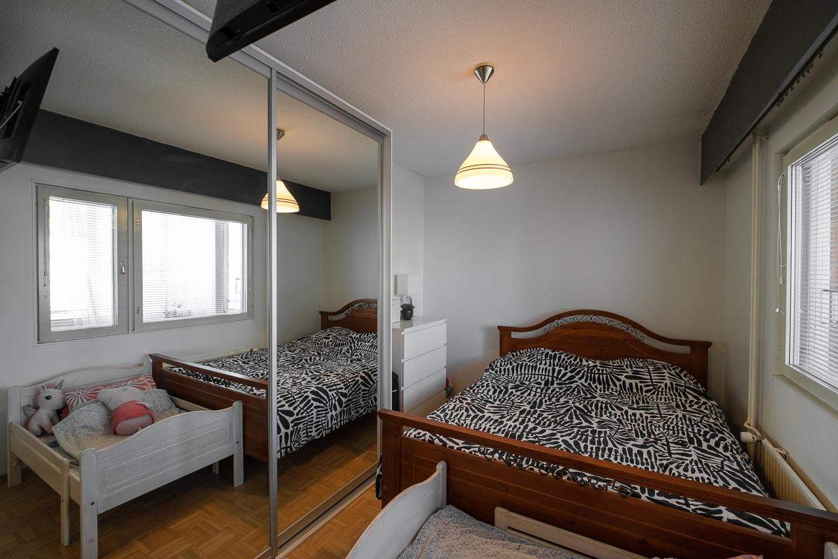 Lukumäärä: 2, seinät (maali), lattiat (parketti), Makuuhuoneissa liukuovikaapit |