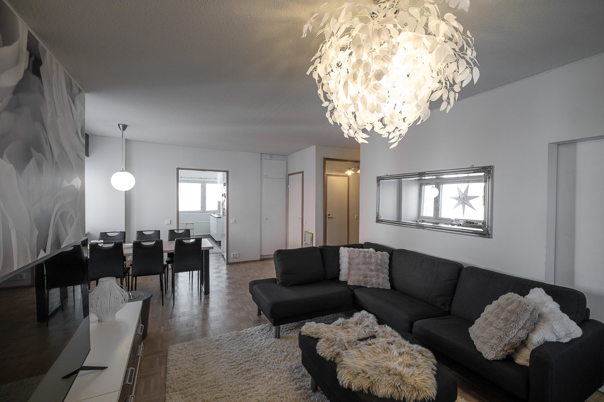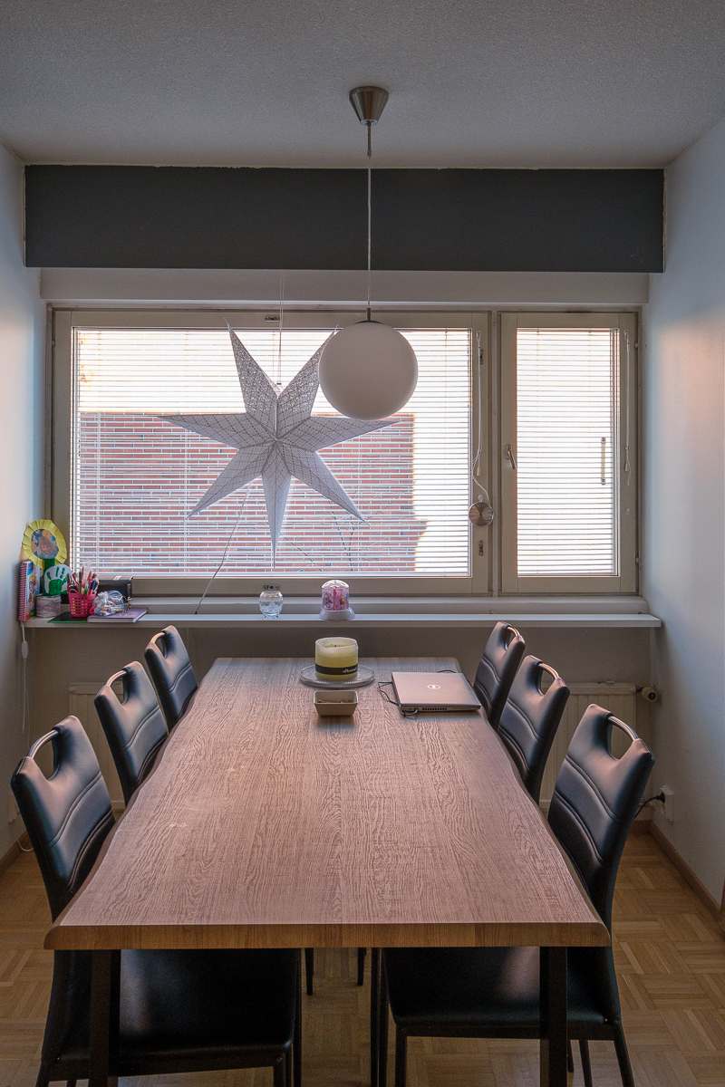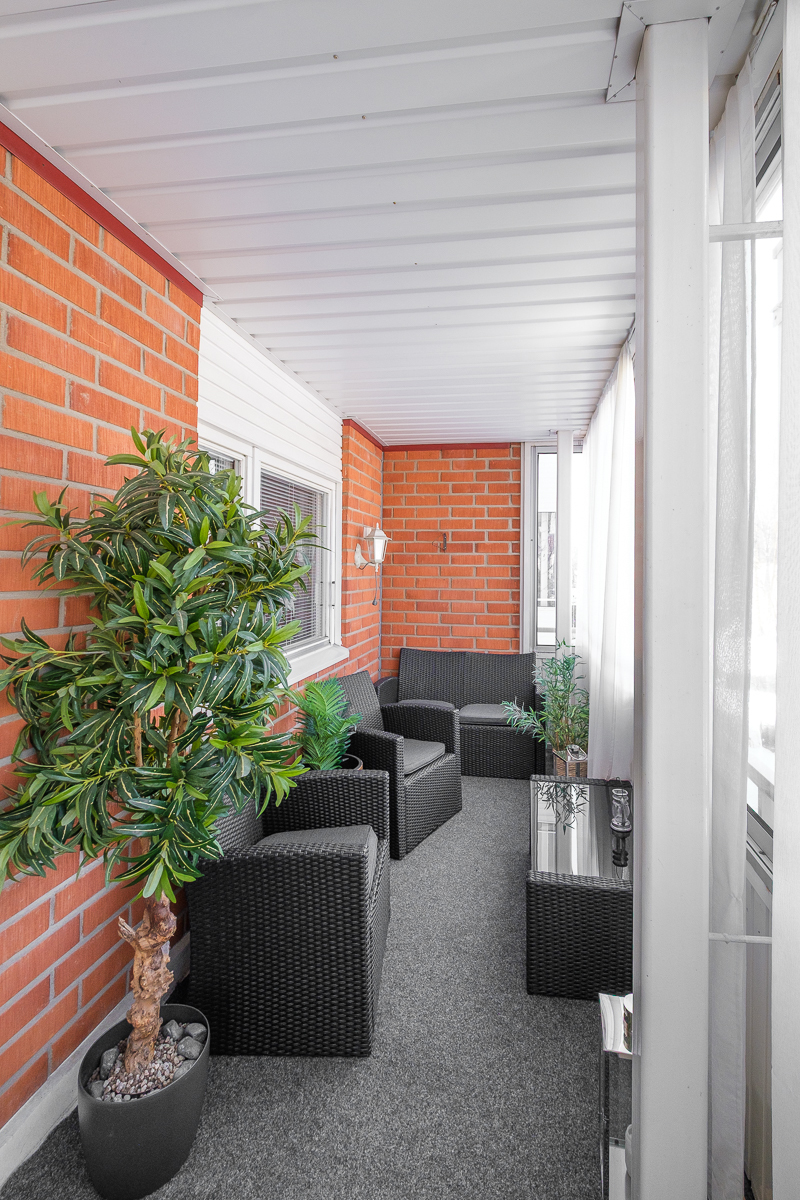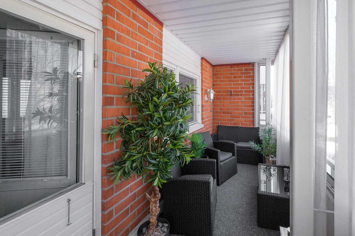 Asunnon kruunaa erittäin iso lasitettu parveke, joka toimii lähes lisähuoneena aikaisesta keväästä myöhäiseen syksyyn.