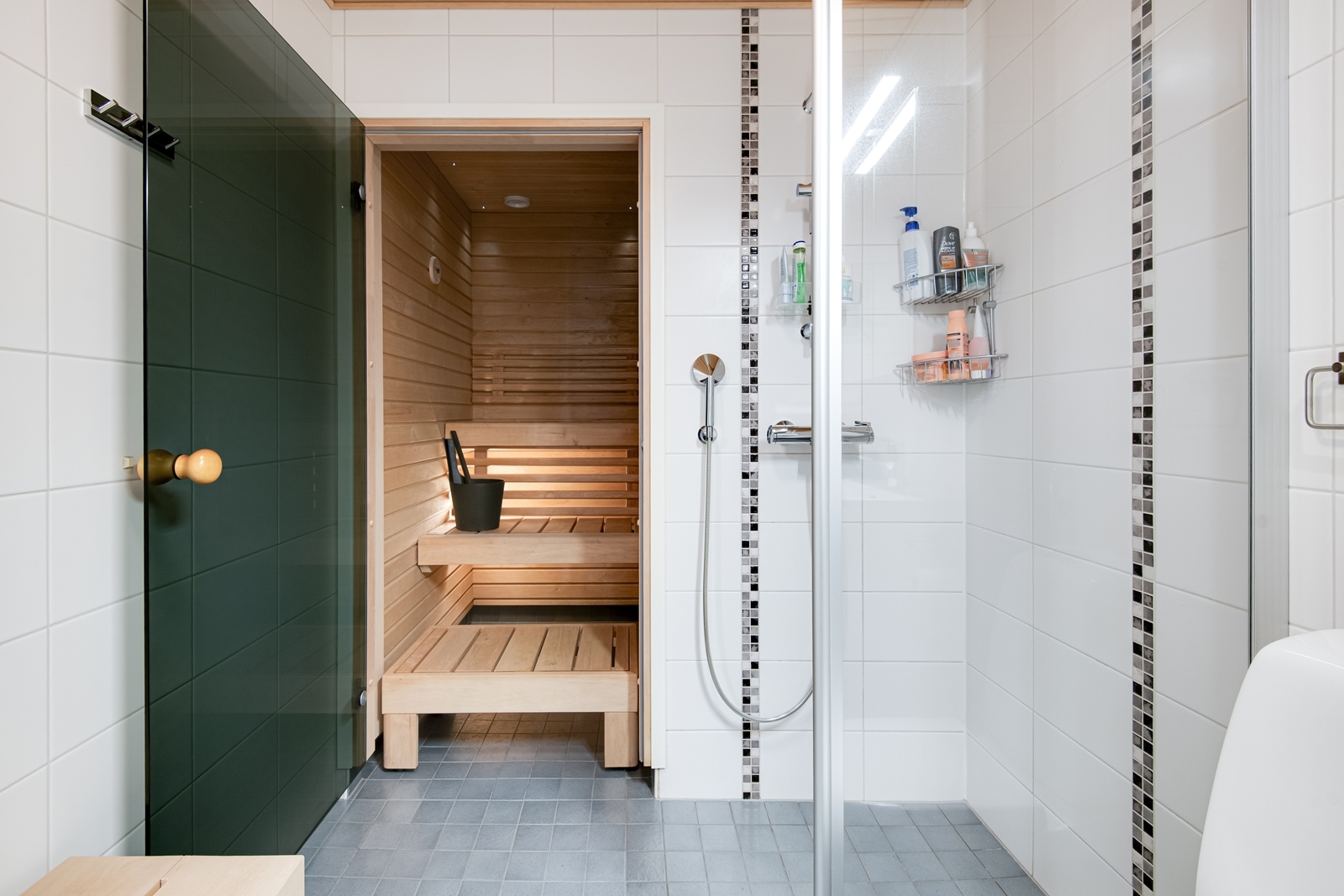 | Saunan kuvaus | Lattiat (laatta), Sähkökiuas, Uusitut lauteet ja kiuassuoja. Lasiovi uusittu karmeineen. Tervaleppää, kivet uusittu 2025. l |