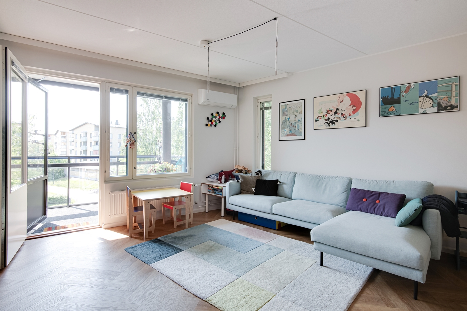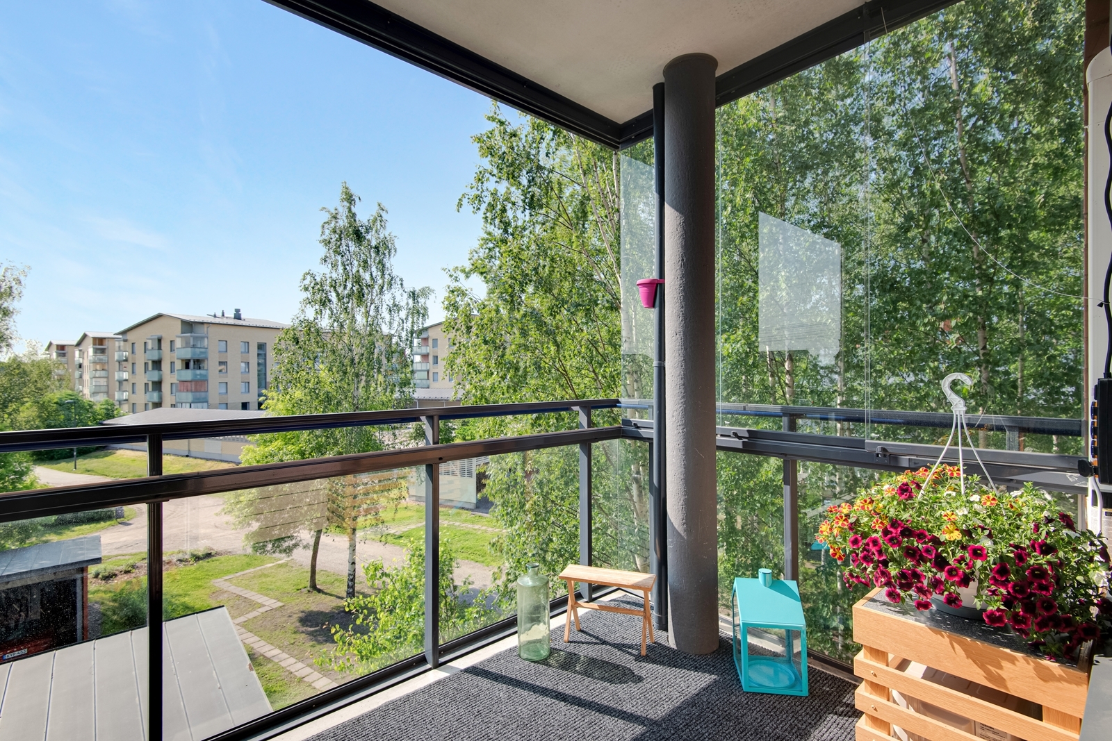 Asunnon mukavuutta lisää ilmalämpöpumppu, joka takaa miellyttävän sisäilman niin kesän helteillä kuin talvipakkasillakin. Länteen avautuvalla lasitetulla parvekkeella voit rentoutua ja nauttia päivän viimeisistä auringonsäteistä.