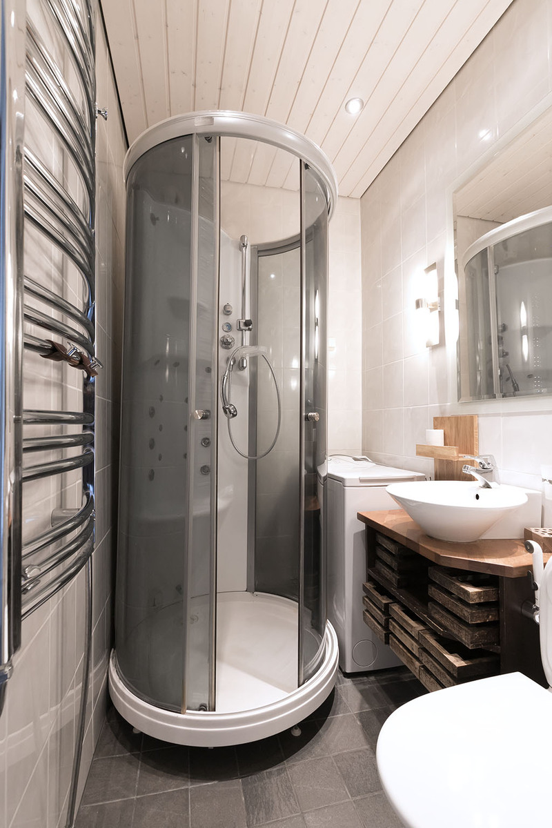 | Kylpyhuoneen kuvaus | Peili, pesukoneliitäntä, suihkukaappi, lattialämmitys, pesukone, suihku, wc-istuin ja kiinteät valaisimet, seinät (kaakeli), lattiat (laatta) |