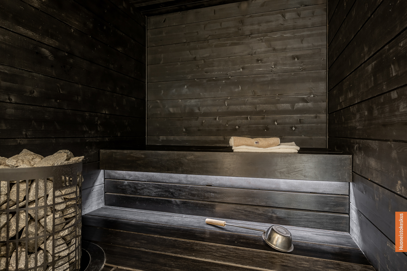 | Saunan kuvaus | Seinät (puu), lattiat (laatta), Sähkökiuas |