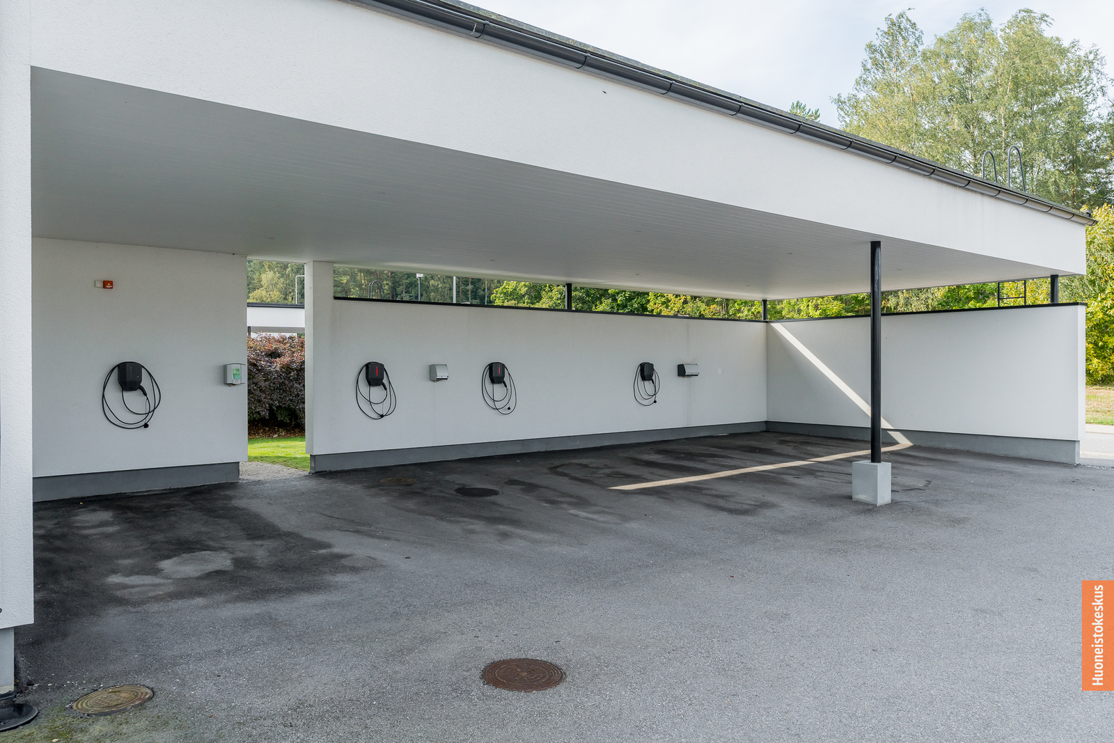 Käytössäsi on kaksi autopaikkaa, pihapaikka ja katospaikka. Autokatospaikka on varustettu sähköauton laturilla.
