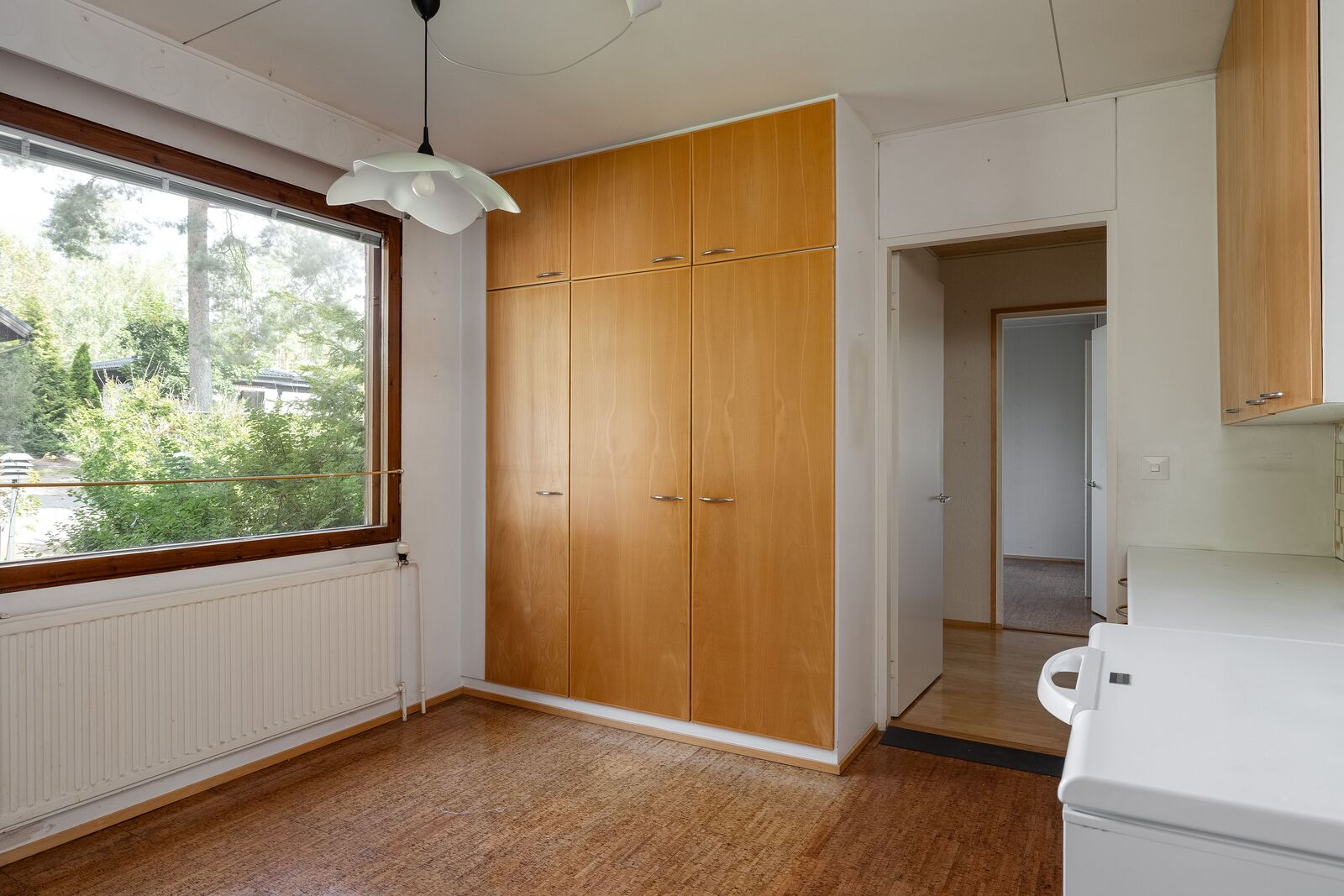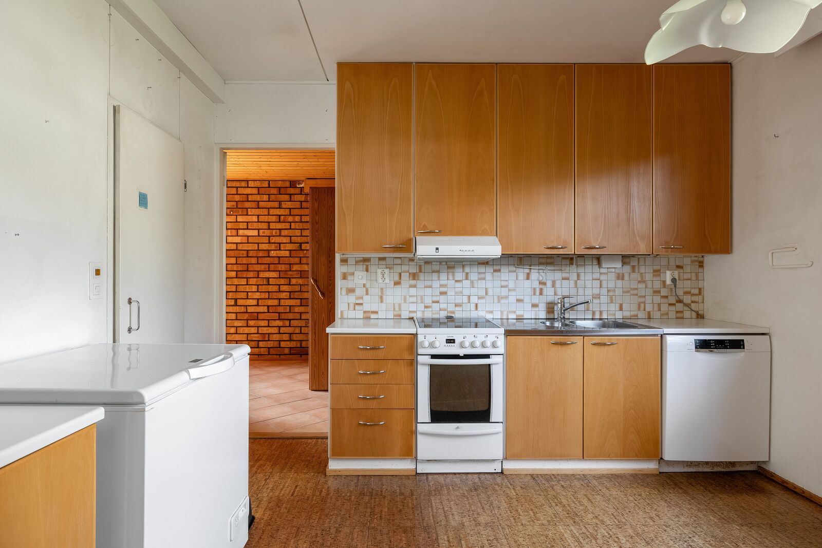 Talon sisäpinnat ovat alkuperäisessä kunnossa, mikä mahdollistaa oman näköisen kodin luomisen ajan myötä. Koti on heti asuttavissa, joten pintaremontteja voi tehdä omaan tahtiin ja budjettiin sopivasti. Keittiöstä löytyy myös kätevä ja tilava kylmiö, joka on nykyaikana harvinaista herkkua.