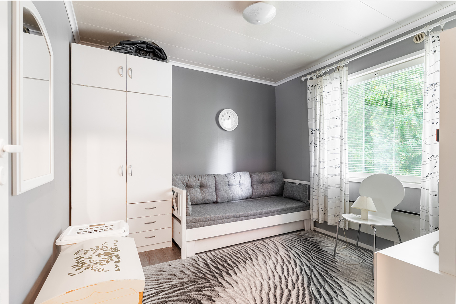 Lukumäärä: 3, seinät (tapetti), lattiat (muovimatto ja parketti) |