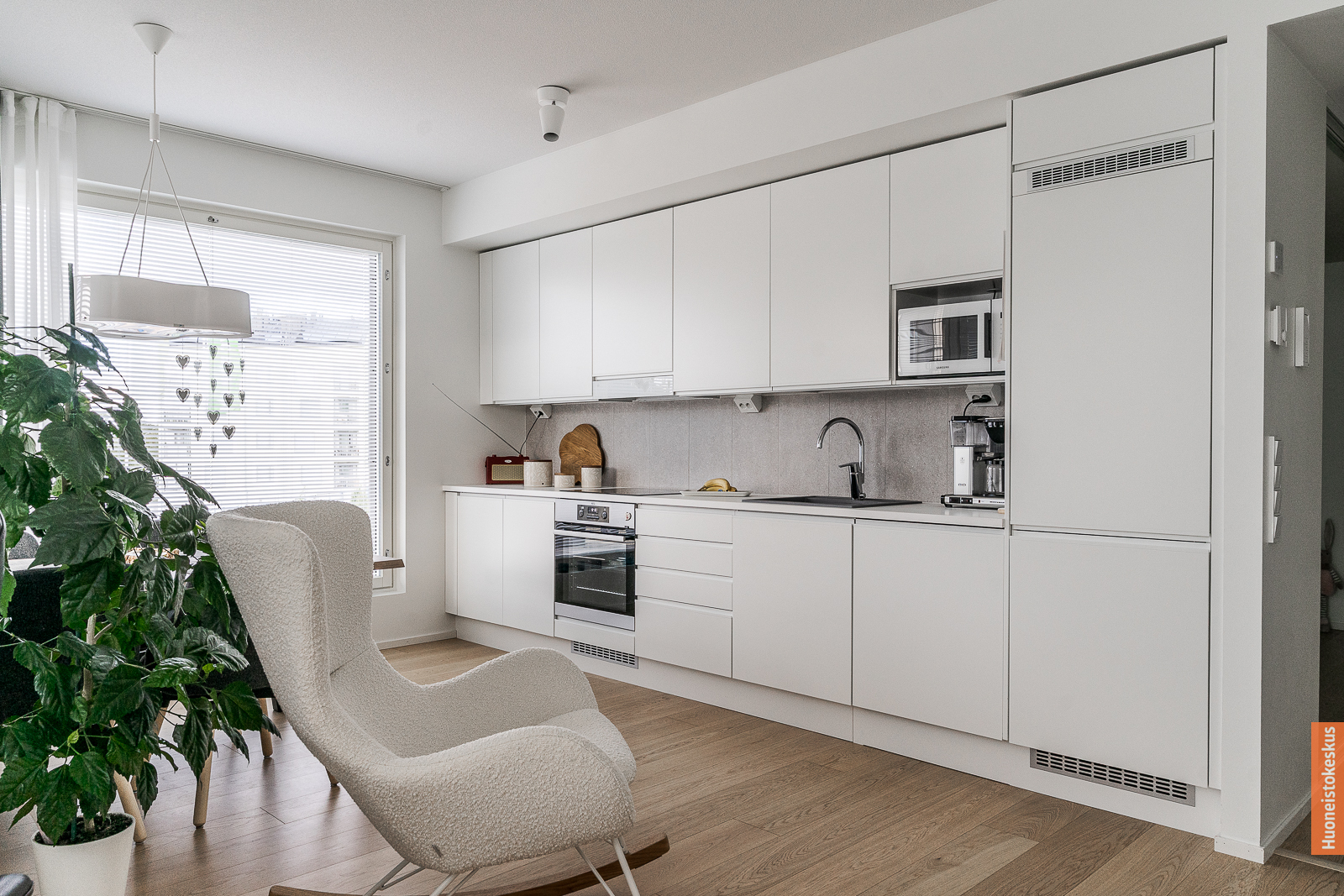 Lisätietoja sisältyvistä varusteista: huoneistokohtainen ilmanvaihtokone, kaapistot, kiinteät valaisimet, sälekaihtimet/rullaverhot |
