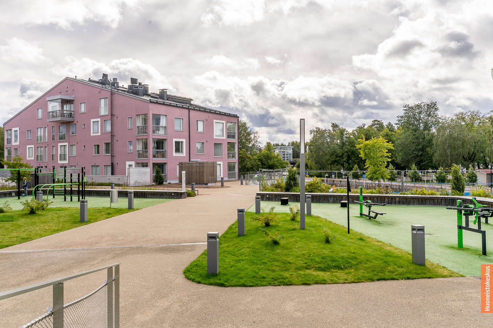Sisäpihalla mm juoksurata, kuntoiluvälineitä, lasten leikkipaikka, grillauspaikka. |