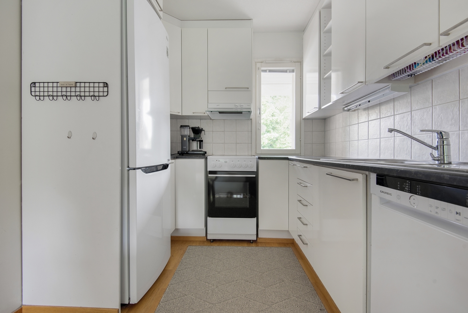 Liesi (Induktioliesi), lattiat (parketti), liesi, astianpesukone, jääkaappipakastin ja liesituuletin / hormi |