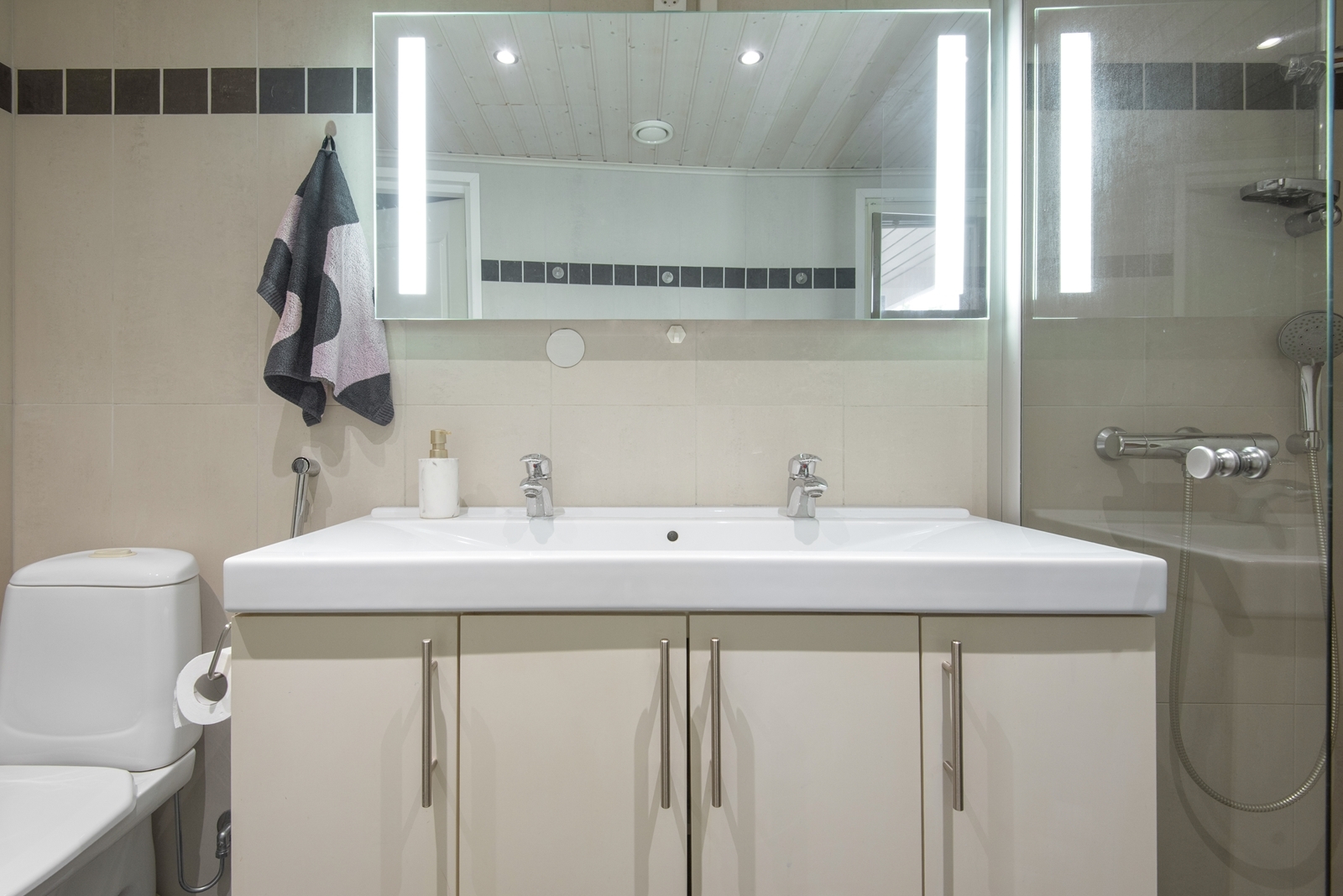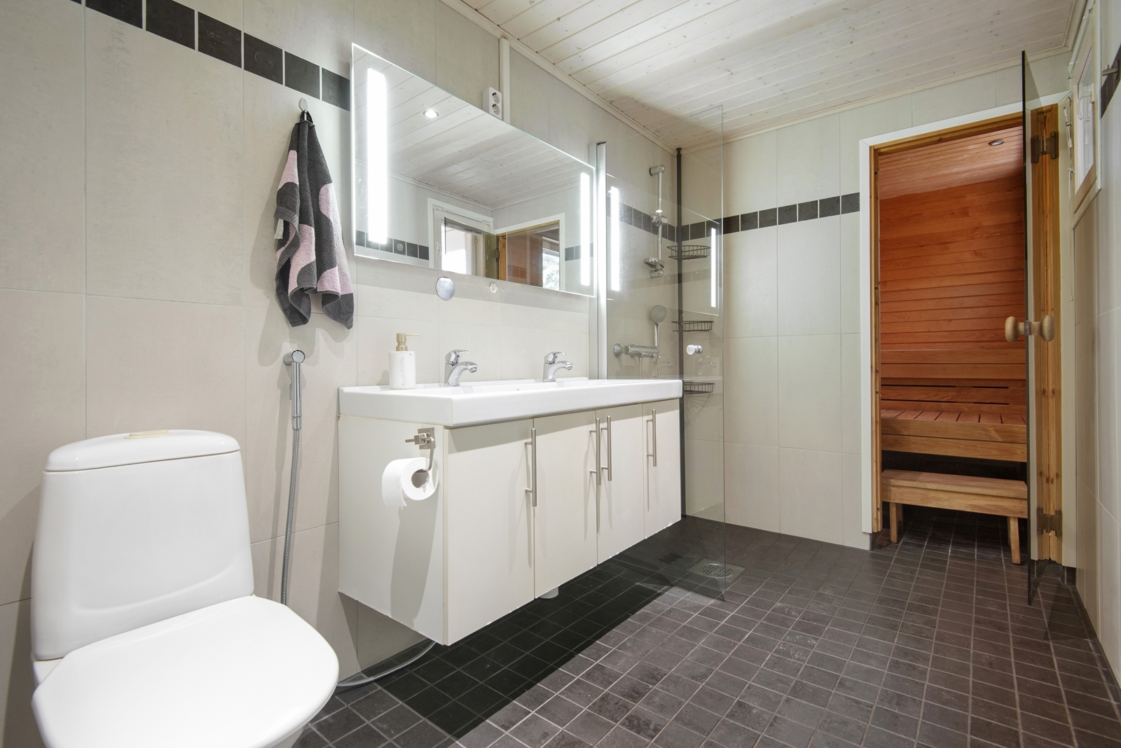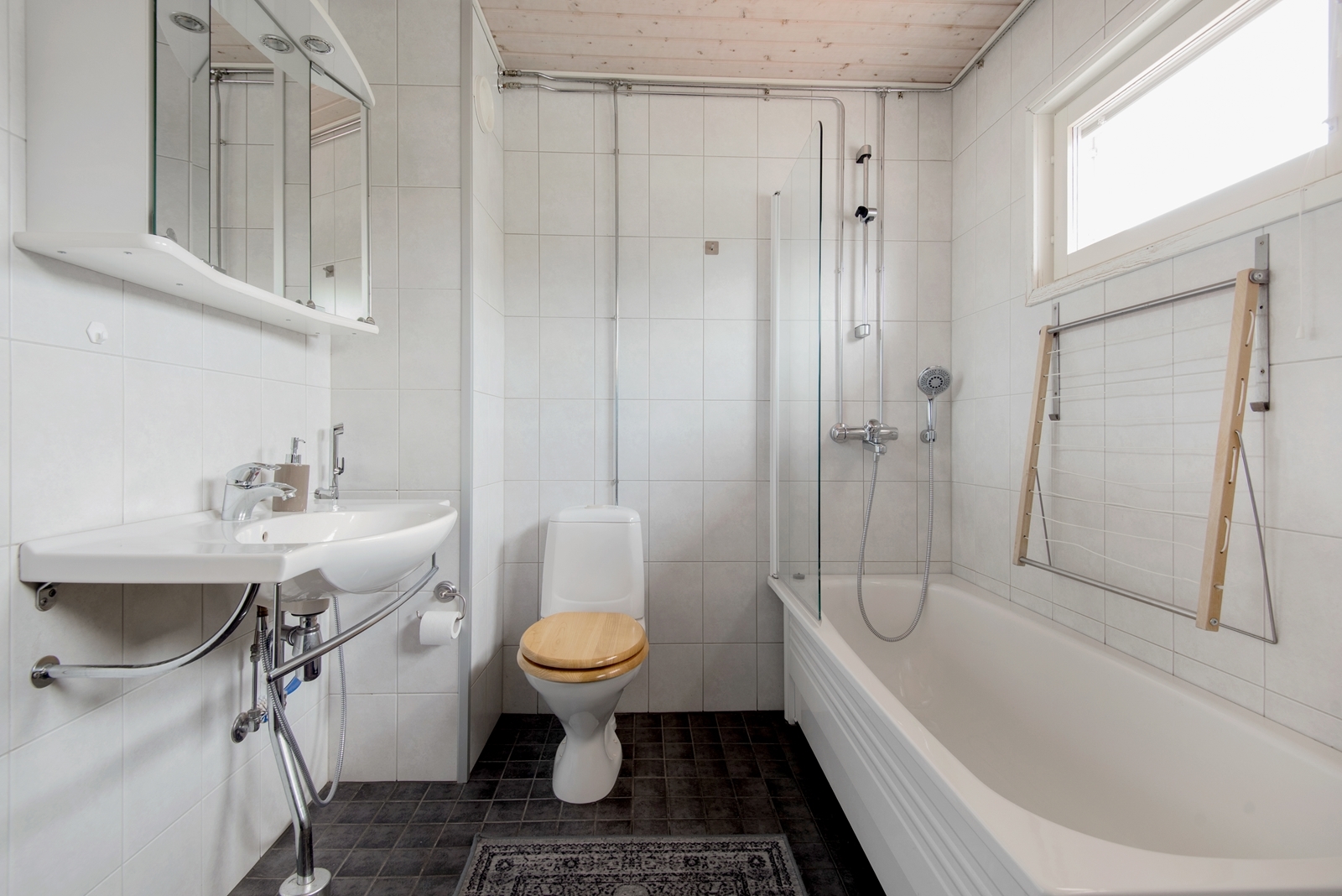 WC-istuin, lattialämmitys, kylpyamme ja suihku, seinät (kaakeli), lattiat (laatta) |