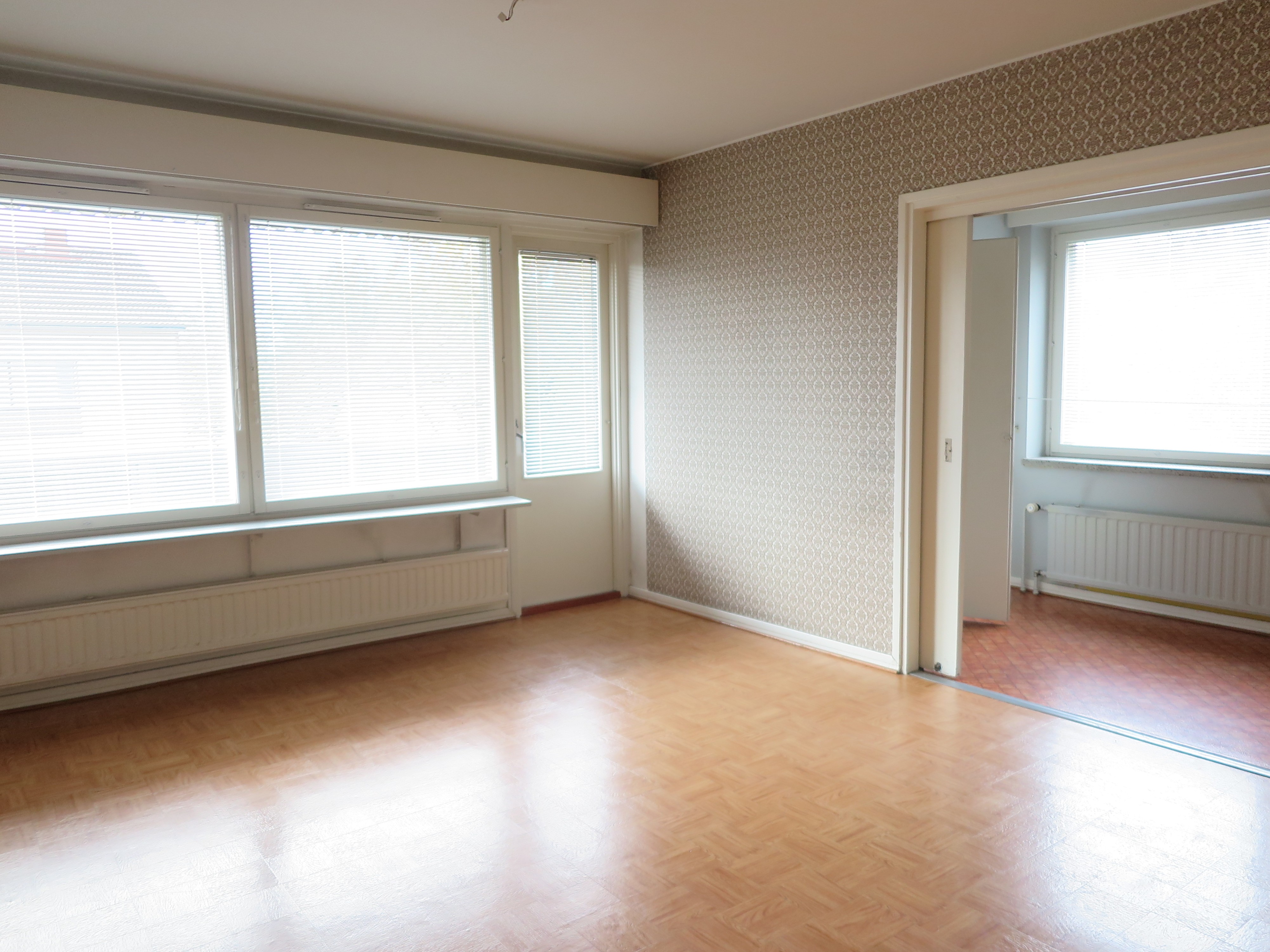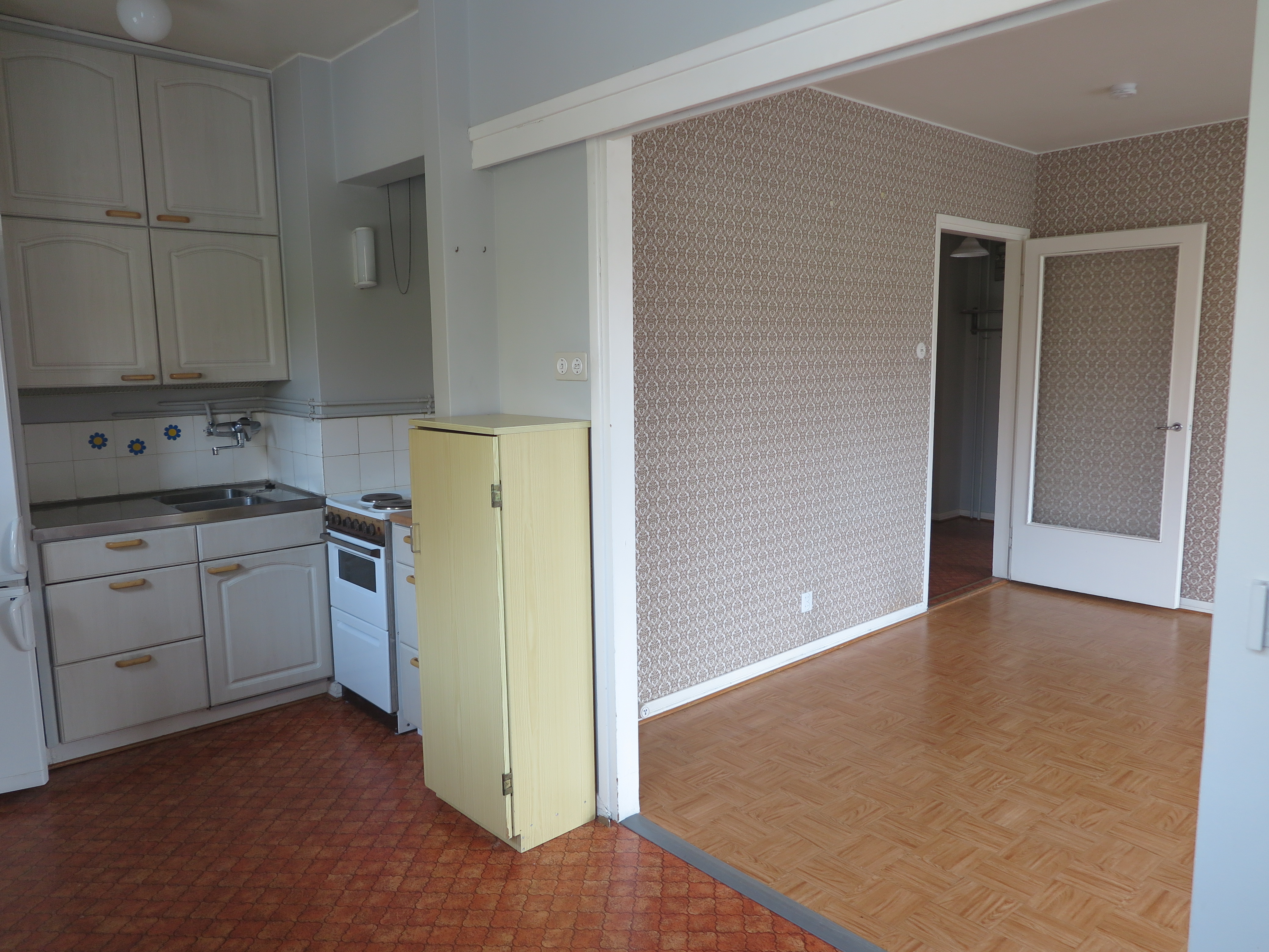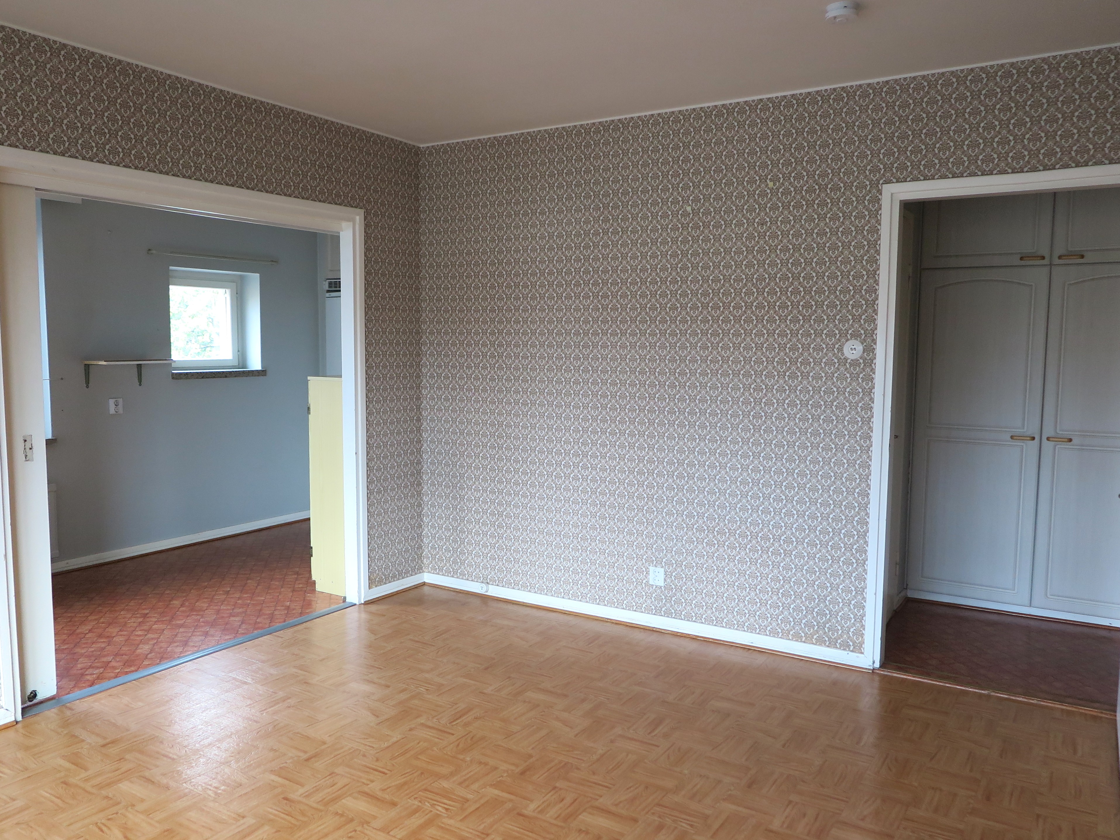 Seinät (tapetti), lattiat (muovimatto) |
