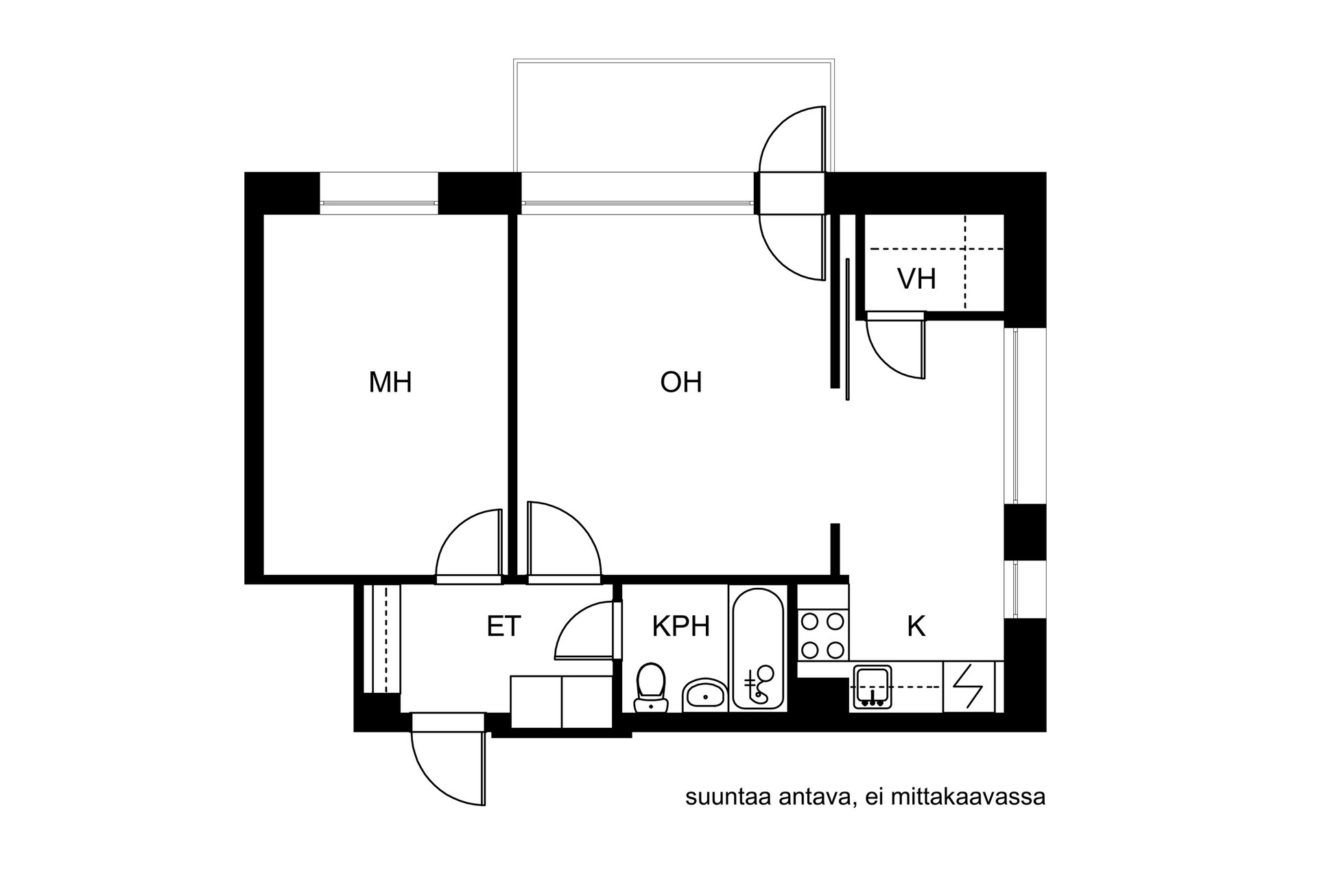 Asunto on peruskuntoinen, olohuoneesta käynti parvekkeelle. Taloyhtiössä ei ole hissiä.